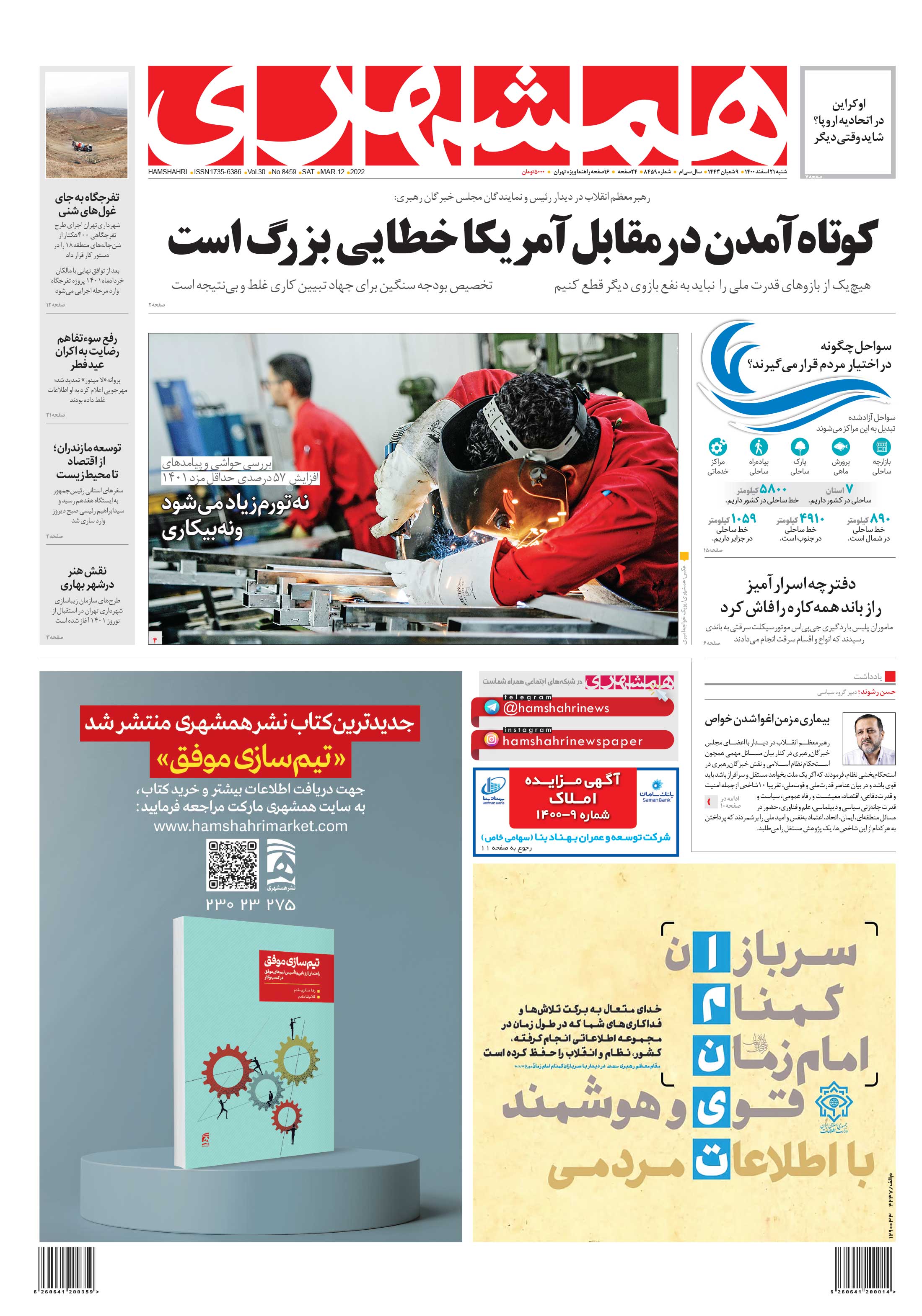رهبر معظم انقلاب اسلامی صبح پنجشنبه در دیدار رئیس و اعضای مجلس خبرگان، با بیان عناصر مجموعه بههم پیوسته قدرت و قوت ملی، مسئله معیشت و روان بودن مسائل مرتبط با مردم را مهم خواندند و با اشاره به جنگ نرم سخت و سنگین دشمنان برای اغوا و اثرگذاری بر مردم و خواص افزودند: علاج این جنگ پیچیده، جهاد تبیین با «روشهای نوین نرمافزاری و متکی بر معارف و مفاهیم عمیق و عالیه اسلام» است.