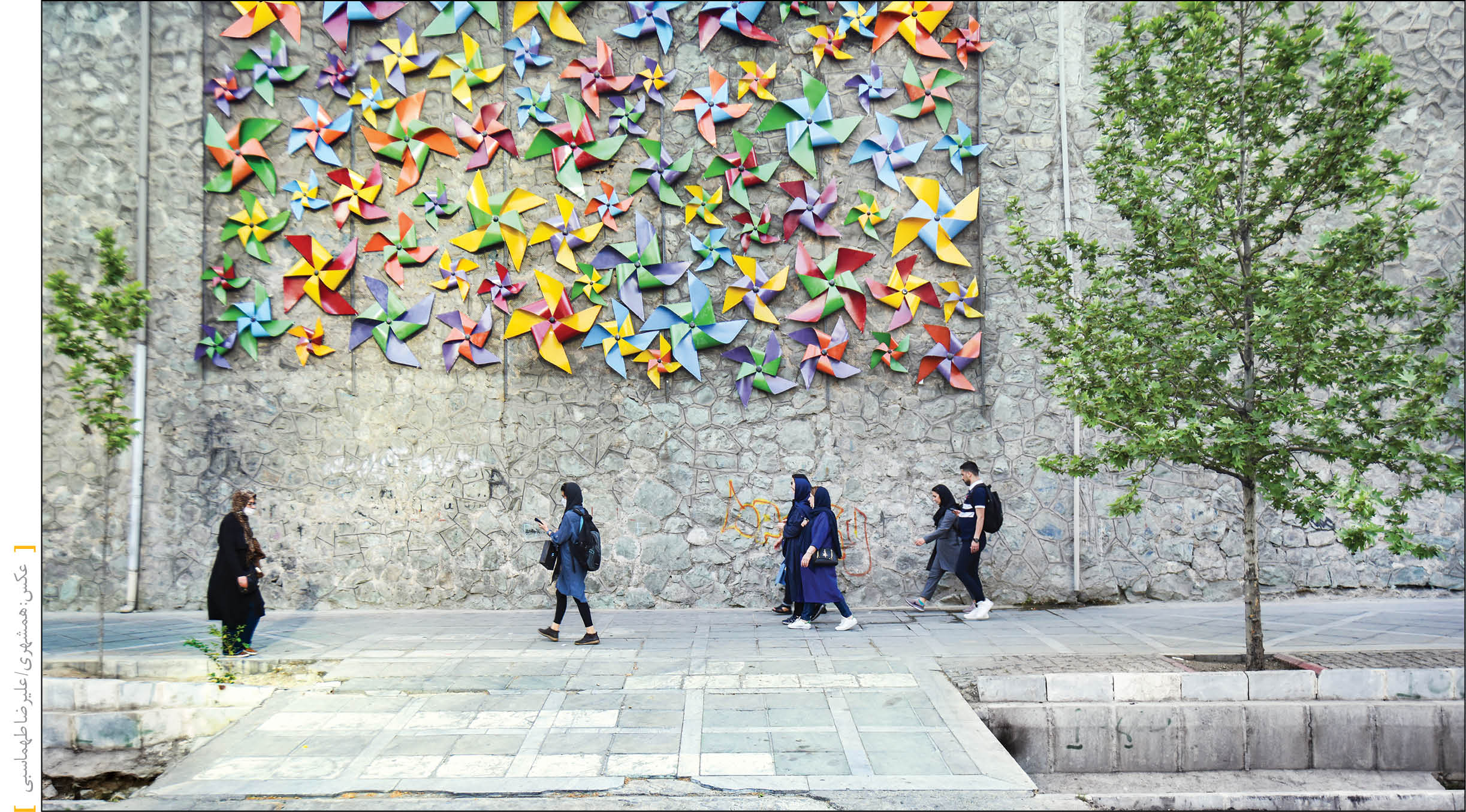 این روزها نقاشیهای دیواری هم مانند برگهای درختان تازه هستند. رنگها برق میزنند. خطوط قوی و درخشان هستند و ابعاد نقاشیها بزرگ است. گلها و پرندگان از روی دیوارهای بلند به شهر نگاه میکنند و طراوت و تازگی از این نقاشیها به دیگر زاویههای خاکگرفته و تیره شهر میتابد.