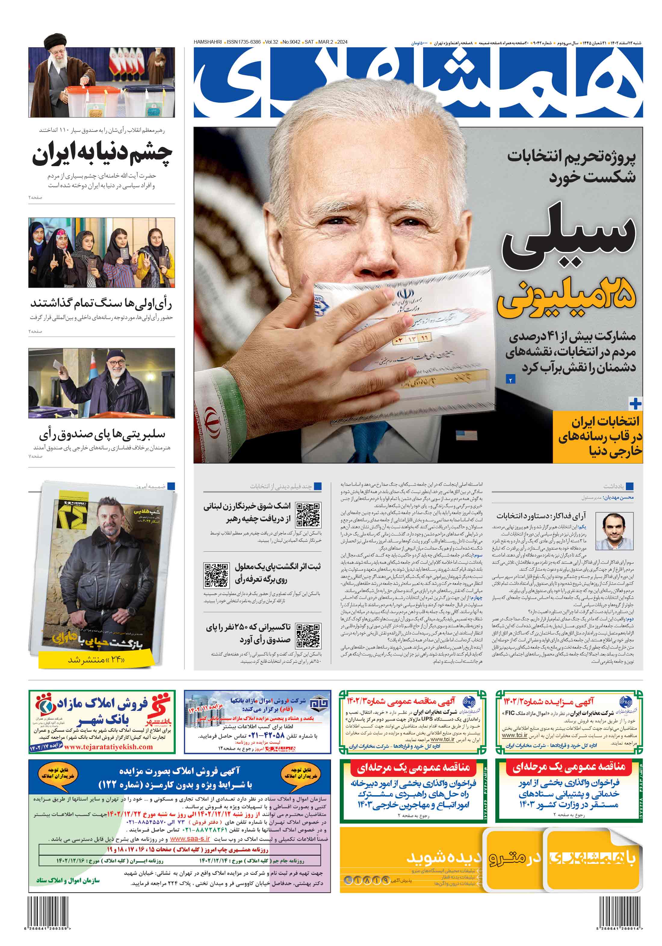 بزرگترین کمپین تحریم انتخابات در ۴۵ سال گذشته شکست خورد. پروژه« بیسابقه»تحریم انتخابات که از پارسال توسط دشمنان خارجی و دنبالههای داخلی آنها طراحی شده بود با مشارکت حدود ۲۵ میلیونی مردم ناکام ماند.