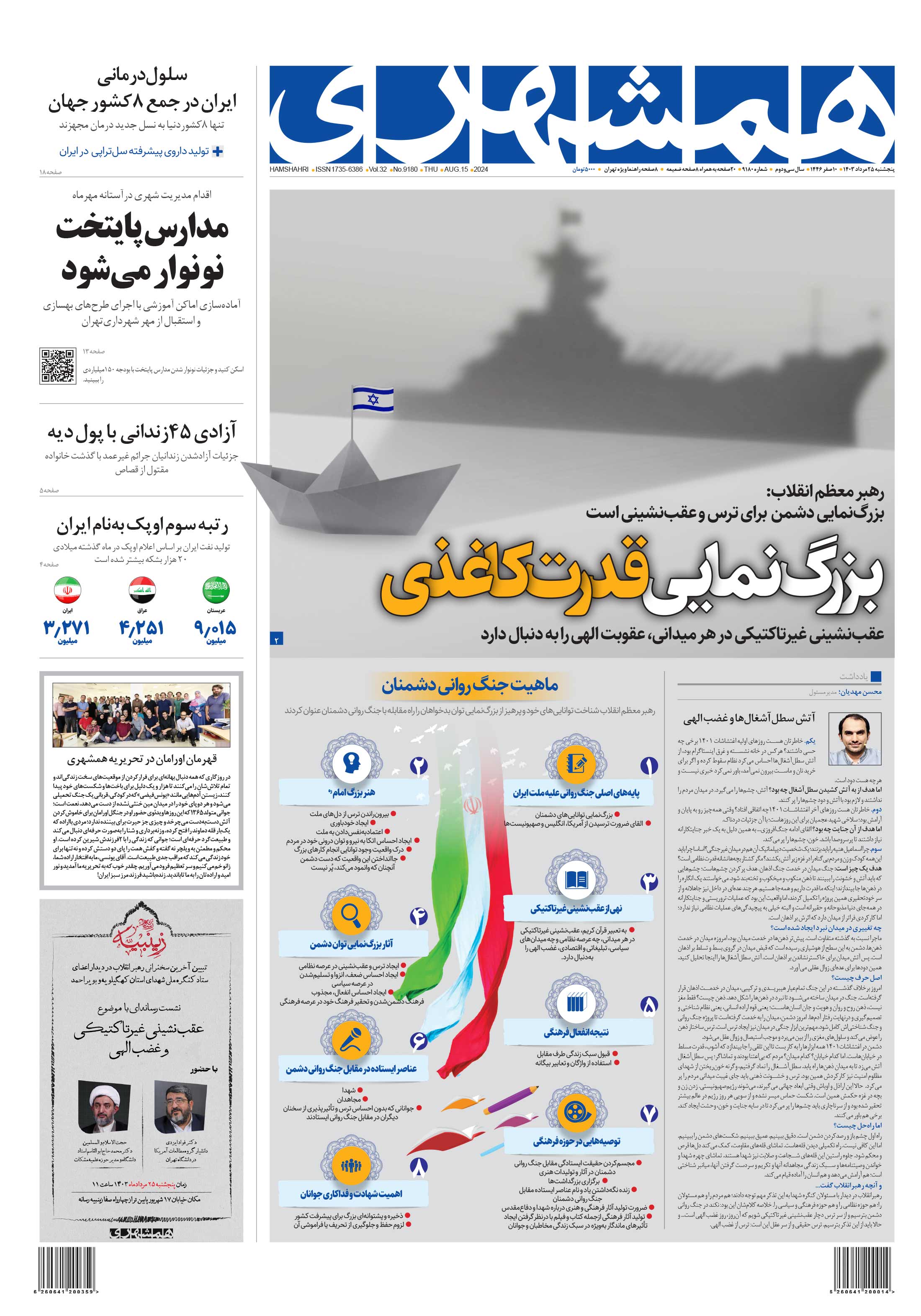 رهبر معظم انقلاب ظهر دیروز چهارشنبه در دیدار دستاندرکاران ستاد کنگره ملی شهدای استان کهگیلویهوبویراحمد با اشاره به ترفند بدخواهان ایران در ایجاد جنگ روانی و ترس برای به عقبنشینی واداشتن ملت ایران در عرصههای گوناگون، شناخت تواناییهای خود و پرهیز از بزرگنمایی توان بدخواهان را راه مقابله با این ترفند خواندند .