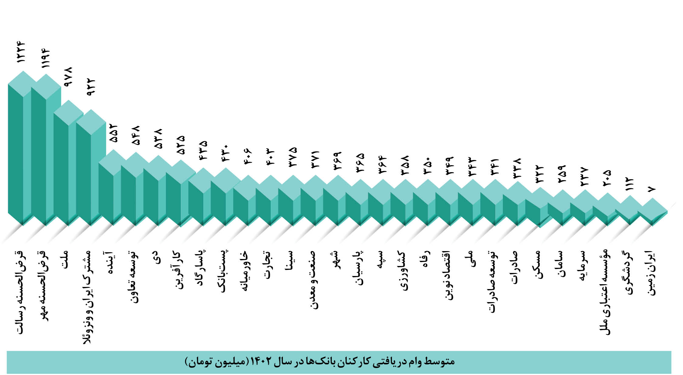 آن طورکه آمارها نشان میدهد بیش از 210هزار پرسنل 29بانک و مؤسسه اعتباری به طور میانگین در سال قبل 435میلیون تومان وام گرفتهاند و برخی بانکها حتی بیش از یک میلیارد تومان به کارکنان خود وام دادهاند.