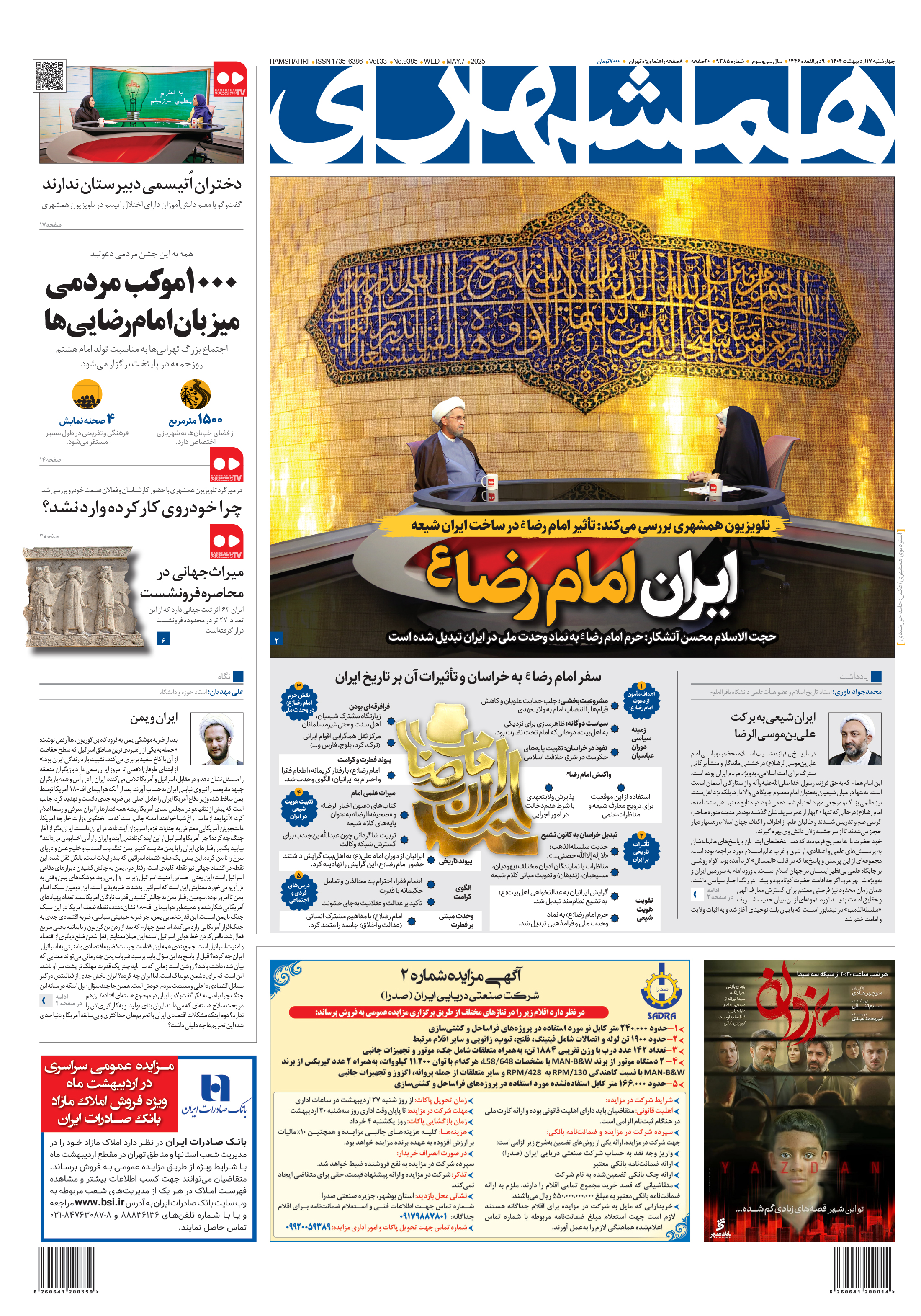 اجتماع بزرگ تهرانیها به مناسبت تولد امام هشتم روز جمعه در پایتخت برگزار میشود