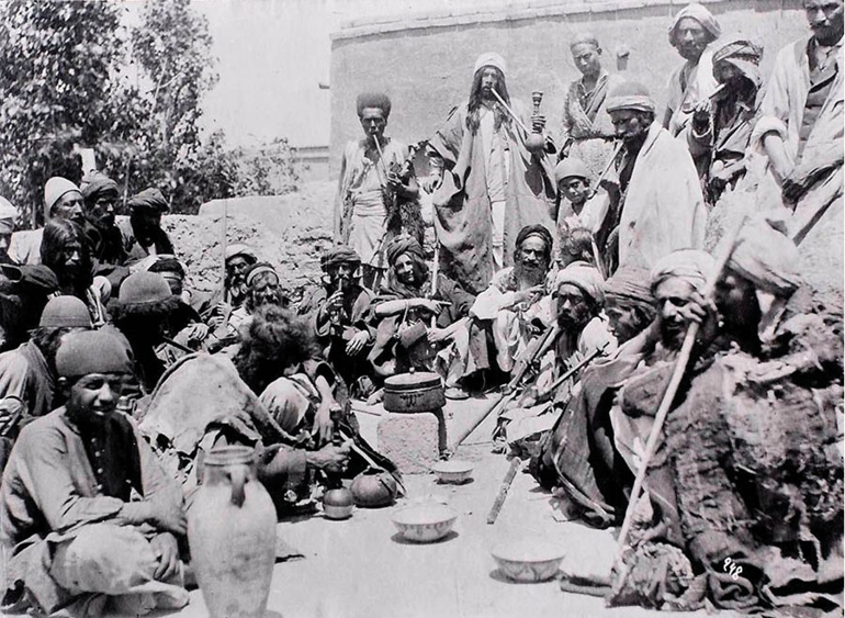 «پدرم در تالار از اعیان و رجالی که به روضه میآمدند پذیرایی میکرد. بساط چای برای این دسته در راهروی تالار پهن و چند نفر پیشخدمت، مخصوص خدمت این اتاق بود. برادرم آقا میرزا رضا در قسمت خود از واردین و روضهخوانها پذیرایی میکرد و کارهای عمومی روضه از قبیل تعیین موقع قلیان و چای و تنظیم سایر کارها را اداره مینمود. مادرم در قسمت خود گذشته از قلیان و چای و قهوه، عدس و قهوه بوداده و شش رنگ قاووت در حقههای بلور که در سینیهای ورشو چیده بود، به مهمانهای خود تقدیم میکرد. عدس بوداده را خانمها برای این میخوردند که تصور میکردند اشک چشم را زیاد میکند. قاووت هم که مایهاش نخودچی و قند و مغز لیموی عمانی و گشنیز یا قهوه یا دارچین یا رازیانه یا مغز بادام ساییده، چاشنی آن میشد، تنقلی بود که خانمها به جای شیرینی پذیراییهای معمولی، اختراع کرده بودند».