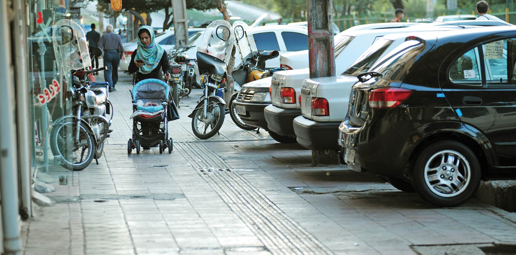 عابران آهسته و بیسر و صدا با کمی حواس جمعی از میان خودروهای پارک شده در خیابان عبور میکنند. سالمندی که عصازنان به این پیادهرو رسیده است میگوید: «الان باید به خیابان بروم تا بتوانم به سر کوچه برسم. خیابان هم که خطرناک است و من نمیتوانم با سرعت راه بروم. هم برای خودم دردسر میشود و هم برای رانندگان. پیادهرو برای ما عابران پیاده بهخصوص سالمندان و بچههاست که امنیت داشته باشند. ولی به هر حال انگار زور این خودروها از ما بیشتر است.»