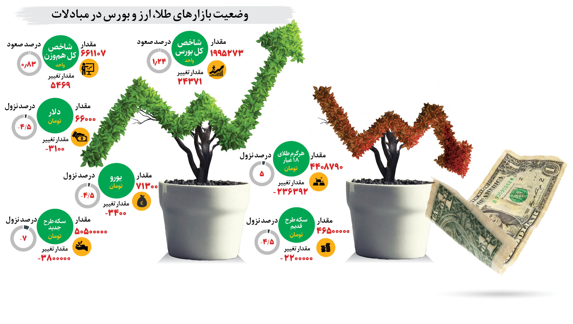 آمارها نشان میدهد سهامداران شرکتهای بورس و فرابورس در پایان نخستین ماه سالجاری بیشترین بازده را در میان همه بازارها بهدست آوردهاند. به گزارش همشهری، در شرایطی که سال قبل بازار سهام کمترین بازده را در میان همه بازارها بهدست آورده بود، آمارها نشان میدهد امسال ورق برگشته و تا اینجای کار بورس رتبه نخست پربازدهترین بازار را بهدست آورده است. طبق اطلاعات موجود شاخص کل بورس تهران که بیانگر میزان بازده سرمایهگذاری در بورس است، از ابتدای سال تاکنون 145هزار واحد رشد کرده و هفته قبل حتی از مرز 1.5میلیون واحد نیز عبور کرد. سهامداران در فروردینماه امسال بهطور میانگین 10.6درصد سود کردهاند. طبق آمارهای موجود میزان رشد شاخص کل هموزن حتی از بازده شاخص کل نیز بیشتر بوده و بیش از 14.5درصد رشد کرده است. این ارقام دوبرابر میزان بازده بازار طلا و ارز است. بخشی از دلایل رشد بازده بورس در مقایسه با سایر بازارها، ناشی از ورود نقدینگی تازه به بازار سهام است؛ بهطوری که ظرف یک ماه گذشته حجم معاملات خرد در بورس به شکل محسوسی افزایش یافته و از روزانه 3 تا 3500میلیارد تومان به 5 تا 6هزار میلیارد تومان رسیده که نشان میدهد امسال تمایل سهامداران برای سرمایهگذاری در بورس افزایش یافته است. در فروردین امسال میزان بازده بازار طلا و ارز 7.6درصد و بازار ارز 5.2درصد بوده است. سال قبل میزان قیمت طلا و ارز بهترتیب 17 و 22درصد افزایش داشت در حالی که میزان بازده سرمایهگذاری در بورس فقط 4.6درصد بود. بهنظر میرسد با توجه به کاهش شدید قیمتها در سال گذشته بازار سهام جذابیت تازهای برای سرمایهگذاران پیدا کرده است. تحلیلگران انتظار دارند این روند بازده تا پایان سال ادامه یابد و بازار سهام امسال با بیشترین رشد در مقایسه با سایر بازارها مواجه شود.