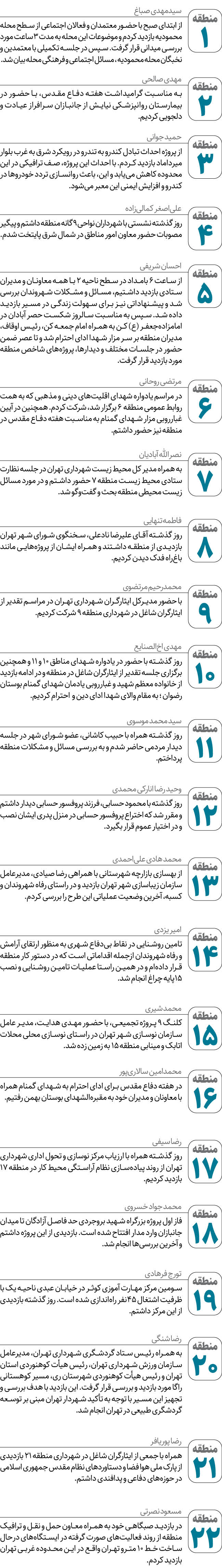 مهم ترین اقدامات مدیریت شهری،کف مناطق رخ می‌دهد و همشهری در پی مطالبه گری از شهرداری‌های مناطق است تا مشخص شود هر منطقه در هر روز چه اقدامی انجام داده است.