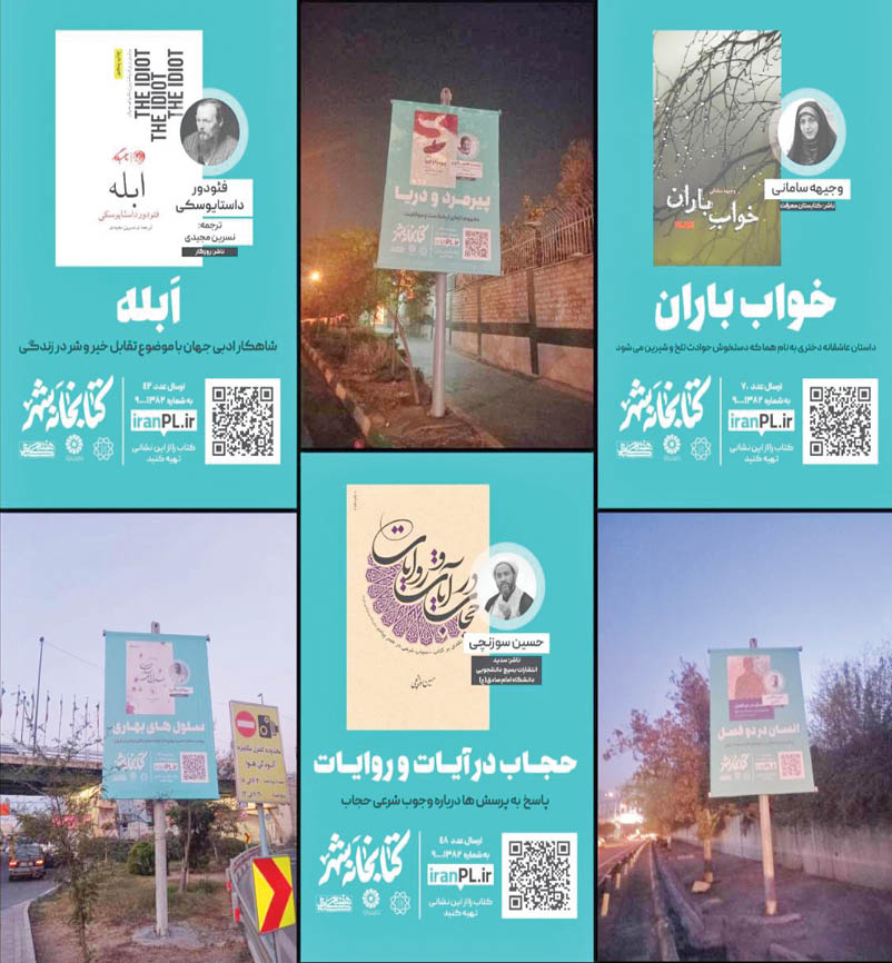 در این بیلبوردها و در کنار عکسها QR code قرار داده شده است که مخاطب با اسکن آن ضمن دریافت 80درصد تخفیف از ناشران، اطلاعات بیشتری درباره کتابها، خلاصه و برشی از آن و همچنین مشخصات نویسنده مشاهده می کند و میتواند یا با ارسال کد اعلام شده برای هر کتاب و ارسال آن به سامانه پیامکی مندرج در تصاویر، کتابهای الکترونیکی بخرد.