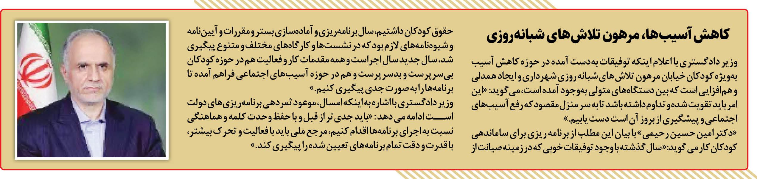 در طول دو سال گذشته پایتخت شاهد ساماندهی گروه های هدف در زمینه آسیبهای اجتماعی بوده است. مدیریت شهری این ماموریت را در اولویت برنامههای خود قرار داده و تا به امروز در این زمینه به موفقیتهای چشمگیری دست پیدا کرده است.اکنون جوامع هدفی مانند کودکان کار، معتادان متجاهر، زبالهگردها، متکدیان، کارتنخوابها و دیگر آسیبدیدگانی که پیش از این از سوی بسیاری از نهاد های مسئول منع پذیرش میشدند؛ مورد ساماندهی قرارگرفته و این روند تا دسترسی به اهداف بلند مدت این مجموعه ادامه خواهد داشت.»