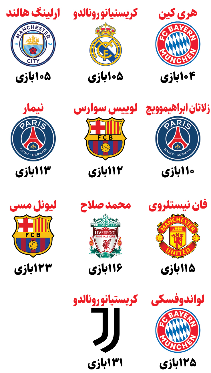 سریعترین بازیکنان در قرن بیستویکم برای رسیدن به 100گل زده در یک باشگاه: