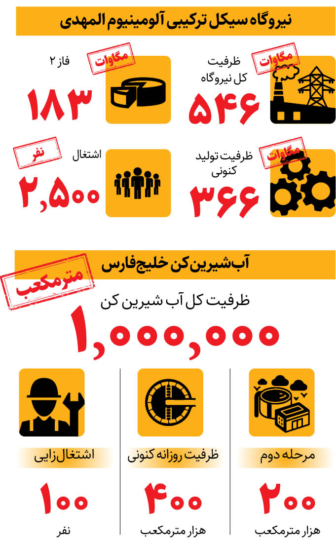 در این سفر یک روزه، تعدادی پروژه به بهره‌برداری رسید که از مهم‌ترین آنها می‌توان به فاز دوم نیروگاه سیکل ترکیبی آلومینیوم المهدی و همچنین مرحله دوم آب‌شیرین‌کن با ظرفیت تولید یک میلیون مترمکعب اشاره کرد.