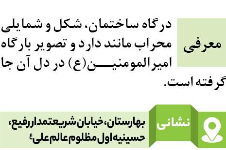 معماری ساختمان 2طبقه هیئت، به عمارت‌های تاریخی شباهت دارد و ذکرها و آیات قرآنی که بر پیشانی عمارت نقش بسته متفاوت بودن آن را یادآوری می‌کند. مراسم گلریزان این حسینیه مراسمی شناخته شده است که فرهنگ پهلوانی، دستگیری و کمک به نیازمندان را زنده نگه داشته است. پیش از اینکه به طبقه دوم حسینیه و بخش موزه ورزش‌ باستانی آن برسید، وارد بخش هیئت ساختمان می‌شوید. وقتی از در کوتاه و باریک هیئت به داخل پا می‌گذارید، حیاط باصفا و پردار و درخت پیش ‌روی شماست. ماکت کعبه وسط حیاط و لابه‌لای درختان جاخوش کرده است و در گوشه دیگر حیاط، ماکت گنبد بارگاه حضرت علی(ع) را قرار داده‌اند تا ولادت و شهادت ایشان را تداعی کند.