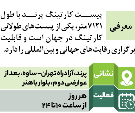 از ویژگیهای کارتینگ پرند این است که از طرف فدراسیون جهانی اتومبیلرانی امکان برگزاری رقابتهای بینالمللی را دارد. در پیست کارتینگ پرند همه سنین میتوانند لذت کارتینگسواری را تجربه کنند و نیازی به داشتن گواهینامه رانندگی نیست. قبل از شروع رانندگی آموزشهای مقدماتی به علاقهمندان کارتینگ داده میشود و تجهیزات کارتینگ نیز بهطور کامل در اختیار آنها قرار میگیرد تا در امنیت کامل رانندگی کنند. خودروهای کارتینگ پرند 2نوع است: رنتال برای مبتدیها و ریس برای حرفهایها. خودروی رنتال برای عموم افراد است تا بتوانند سرعتهای ۷۰ کیلومتر در ساعت را در فضای واقعی تجربه کنند اما سرعت ماشینهای ریس در هر ساعت به ۱۸۰کیلومتر میرسد.