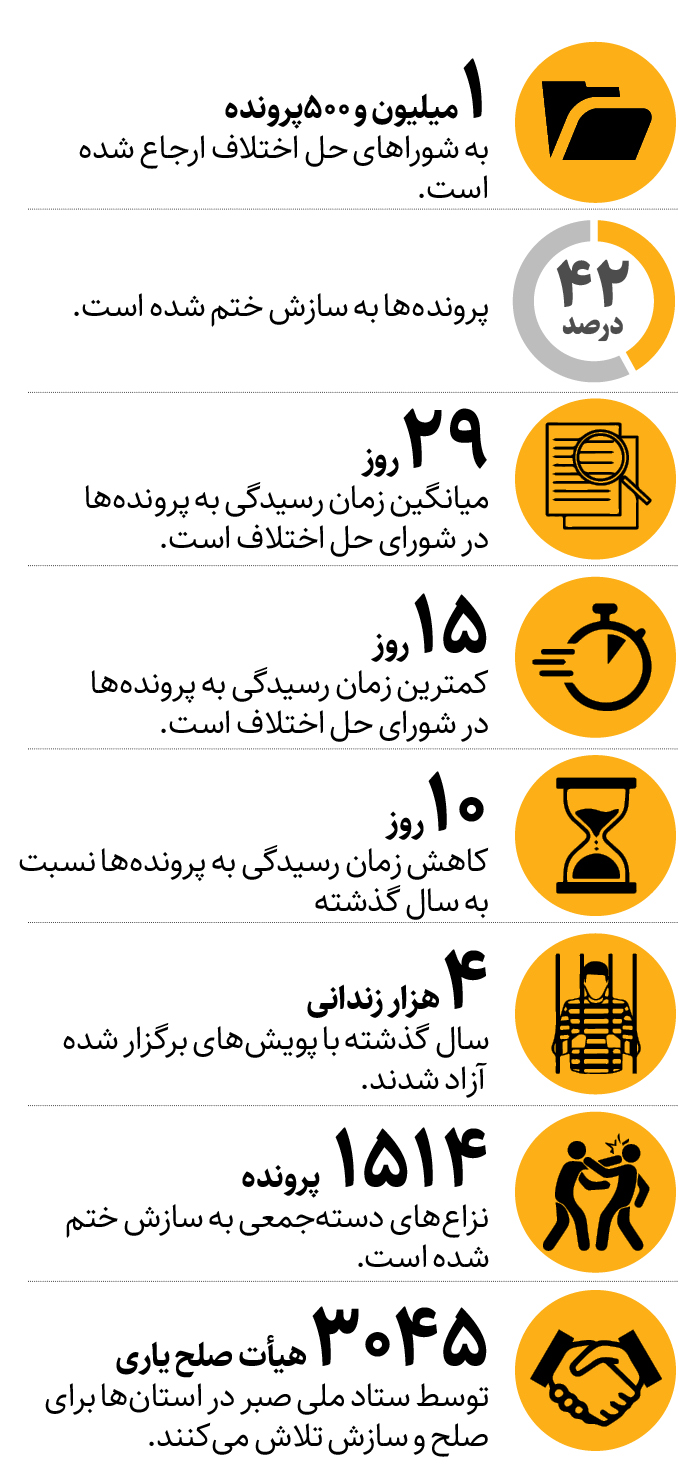 رئیس توسعه شوراهای حل اختلاف کشور در بیست و چهارمین روز تأسیس شورای حل اختلاف قوه قضاییه از سازش در حدود 300پرونده قصاص در 6ماه ابتدایی امسال خبر داد.‌حجت‌الاسلام ‌ هادی صادقی روز شنبه در نشست خبری در پاسخ به سوال همشهری درباره آمار سازش و بخشش در پرونده‌های قتل گفت: در 6‌ماه اول امسال 300پرونده قتل منجر به سازش شده‌ که بیشترین آنها با ۴۸ مورد مربوط به استان خوزستان است. در این داده‌نما‌ به برر‌سی فعالیت شورای حل اختلاف در 6 ماه نخست امسال  پرداخته‌ایم.