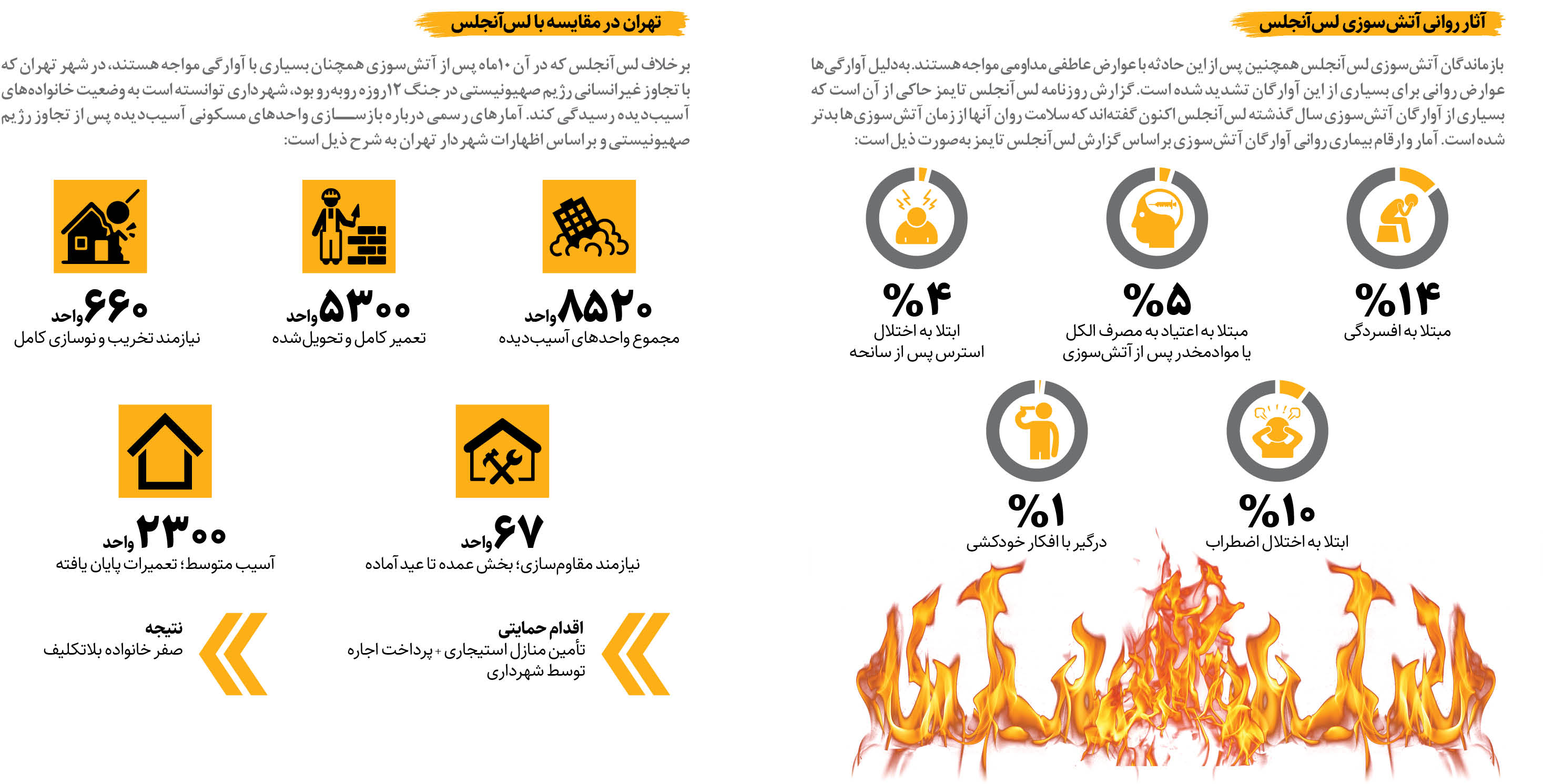 افرادی که به خانههایشان بازنگشتهاند، چه کسانی هستند؟ اغلب افرادی که پس از آتشسوزی نتوانستهاند به خانههای خود بازگردند، شامل صاحبان خانهها و مستأجرانی هستند که خانههایشان ویران شده و یا خانههایشان اگرچه بهطور کامل ویران نشده، بهدلیل آتشسوزی قابل سکونت نیست و هزینه بازسازی آن نیز بهدلیل مساحت بزرگ اغلب این خانهها سنگین است.