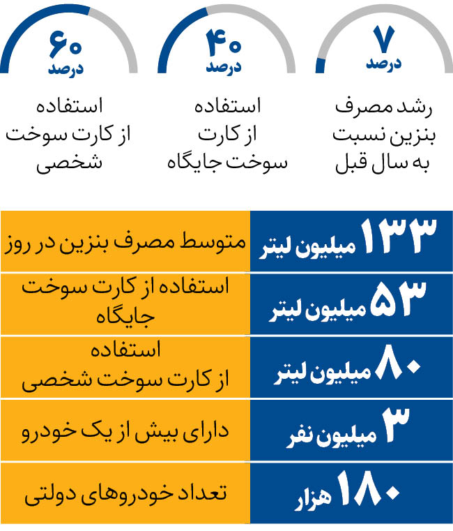 براساس آمار وزارت نفت، هدف اصلی مصوبه بنزینی اخیر دولت، استفاده حداکثری از کارت سوخت شخصی شهروندان است، چراکه حدود ۴۰درصد بنزین توزیع شده در کشور با کارت اضطراری جایگاهها سوختگیری میشود که معادل حدود ۵۳میلیون لیتر در روز است. برآورد وزارت نفت این است که اگر از کارت سوخت شخصی استفاده شود تا ۸۰درصد مردم به کارت اضطراری سوخت نیاز ندارند و مصرف ماهانه آنها با همان بنزین سهمیهای تامین میشود.