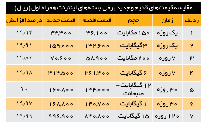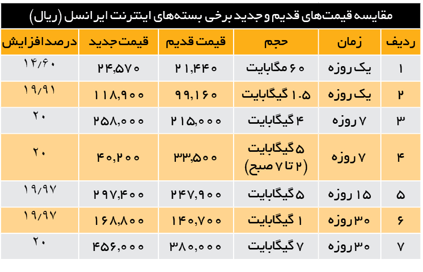 سرانجام با اصرار اپراتورها، قیمت اینترنت تا سقف 20درصد افزایش یافت