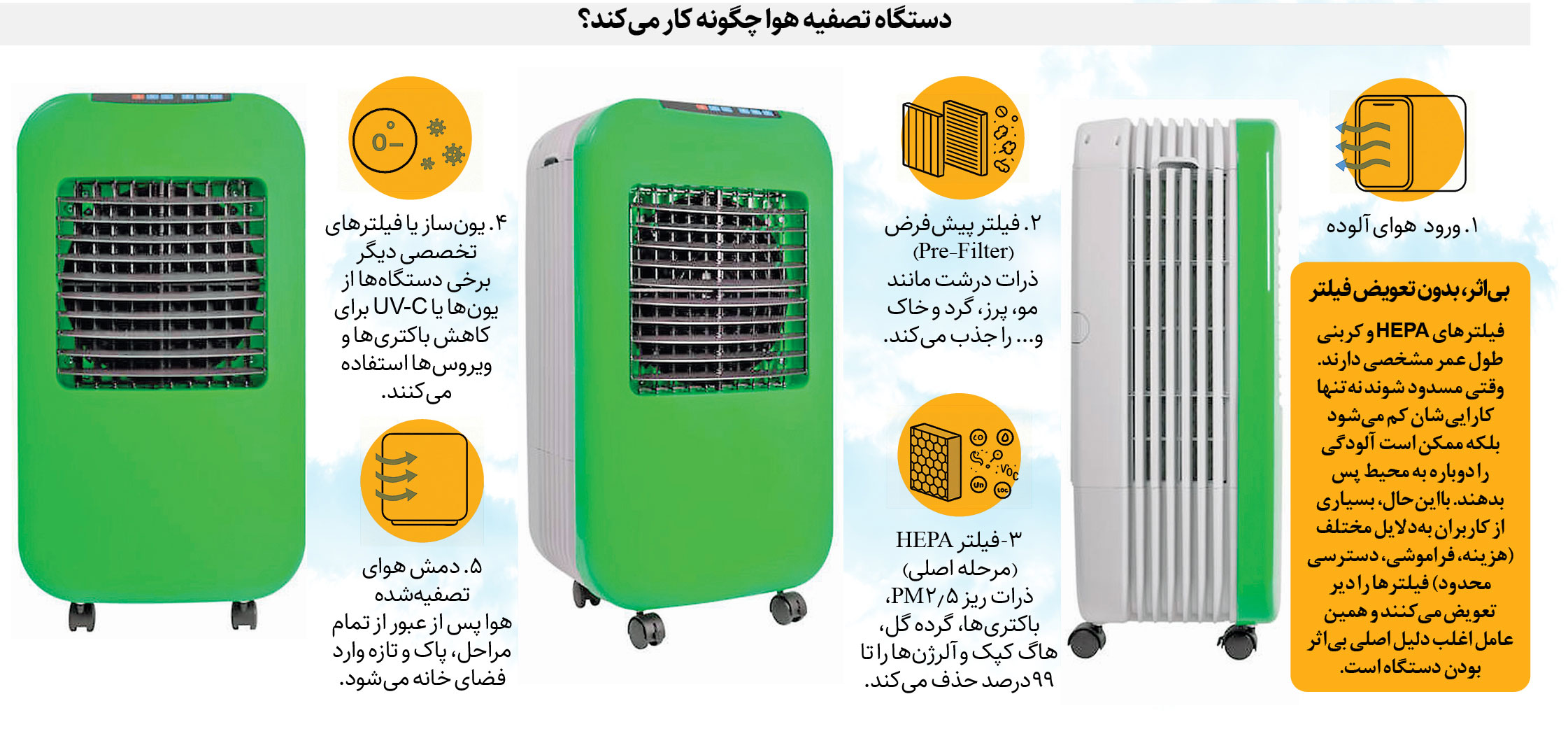 پدرام یوسفی، شیمیدان و قائم مقام مدیرعامل یک شرکت دانشبنیان در گفتوگو با برنامه «پارکوی» تلویزیون اینترنتی همشهری به نکات مهمی درخصوص استفاده از دستگاههای تصفیه هوا اشاره کرد. او گفت: «فیلتر HEPA اصل داستان تصفیه است. این فیلتر میتواند ذرات آلودگی تا 2.5میکرون را مهار کند، اما برخی آلایندهها در شهری مانند تهران ریزتر از 2.5میکرون هستند. با این حال این دستگاهها تا 80درصد توانایی جذب چنین آلایندههایی را دارند. برای بهرهوری بیشتر از این دستگاهها باید مراقب باشیم که در و پنجره خانه باز نماند. هرچند دستگاههای تصفیه هوا در حذف ذرات بسیار موفقند اما همه آنها قادر به حذف آلایندههای گازی یا بوهای شیمیایی نیستند؛ مگر اینکه مجهز به «فیلتر کربن فعال» باشند. حتی با وجود این فیلترها، میزان جذب گازها بسته به مدل و طراحی دستگاه متفاوت است و همیشه کامل نیست. از سوی دیگر، فضای کارکرد دستگاه محدود است. بسیاری از مردم دستگاهی با توان نامتناسب با اندازه خانه میخرند و در نتیجه تصور میکنند تصفیهکننده کار نمیکند، درحالیکه مساحت اتاق بسیار بزرگتر از ظرفیت دستگاه است.»