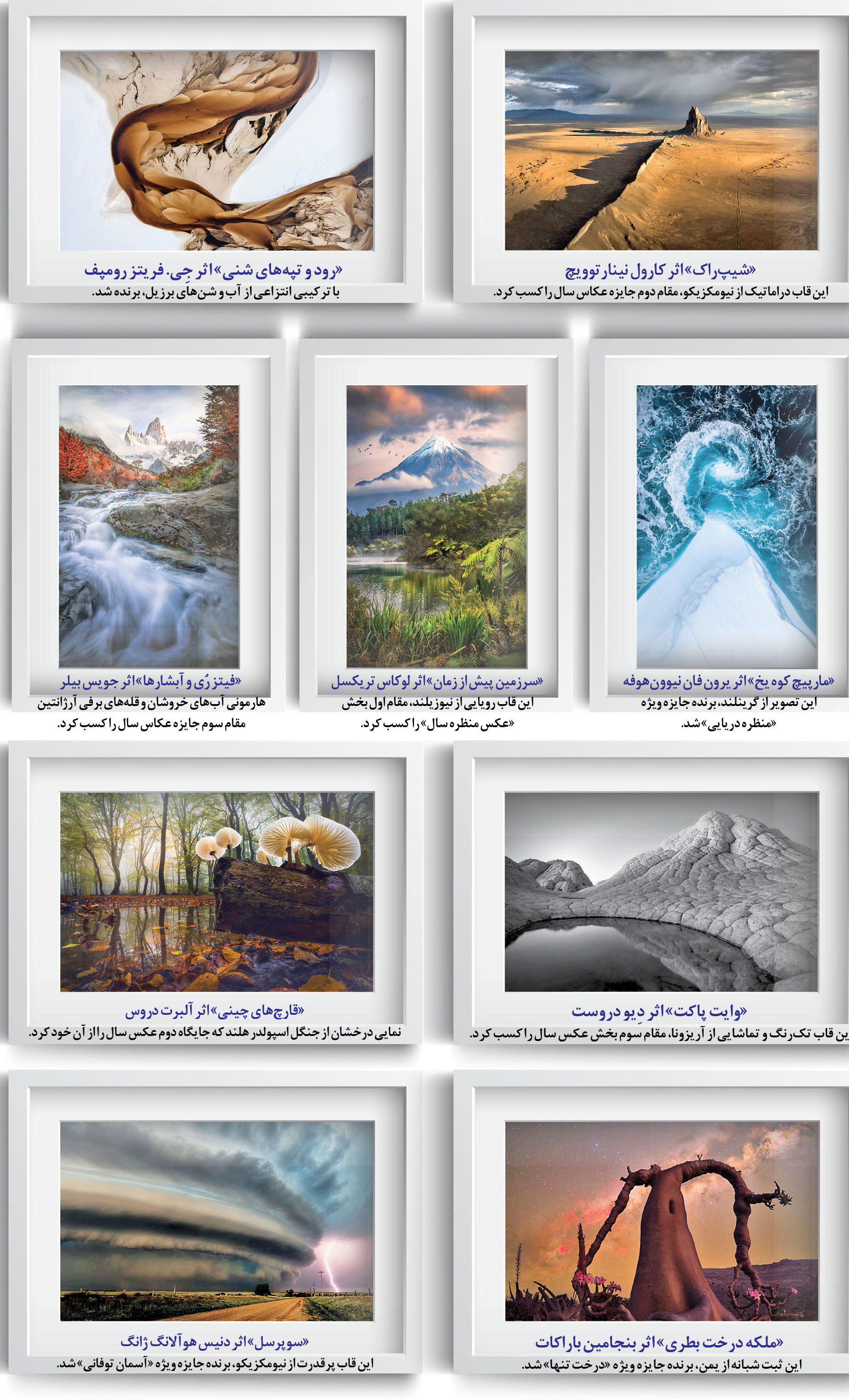 عکاسی از منظره شاید قدیمیترین تلاش بشر برای نگهداشتن لحظهای از زمان باشد؛ لحظهای که نور، رنگ و سکون دستبهدست هم میدهند تا جهان را از نگاه انسانی بازآفرینند. در دنیای امروز که تصاویر مصنوعی هر روز مرز واقعیت را باریکتر میکنند، هنوز هستند کسانی که با دوربینشان سراغ زمین میروند و بیهیاهو، حقیقت منظره را ثبت میکنند. دوازدهمین دوره «عکاس منظره بینالمللی سال۲۰۲۵» در چنین بستر معنایی شکل گرفت؛ رقابتی جهانی با بیش از 3هزار و 600اثر از گوشهوکنار دنیا که هدف آن ستایش نگاه انسانی به طبیعت است؛ نگاهی بیواسطه،بدوندستکاری هوش مصنوعی و وفادار به تجربه شخصی عکاس. تمامی آثار نهتنها باید توسط خود هنرمند ثبت شوند بلکه ویرایش و پرداخت نهاییشان نیز کار خود او باشد؛ چراکه همین بخش از فرایند، جوهر خلاقانه عکاسی منظره را میسازد. در این میان، داوری آثار کاری آسان نبود؛ 5 داور، 5 جهان متفاوت و 5 سلیقه. نتیجه، مجموعهای از ۱۰۱ تصویر برگزیده بود که هرکدام بهتنهایی میتوانند کتابی از نگاه و سکوت باشند. در رأس این فهرست، نام جی. فریتز رومپف درخشید؛ هنرمندی که منظره را نه بهعنوان ثبت طبیعت، بلکه بهعنوان بازتابی از روح انسان میبیند. تصاویری که در ادامه میبینید، برگزیدگان همین جشن تصویرند؛ قابهایی از زمین که هرکدام، روایتی تازه از دیدن جهان را پیش رو میگذارند.