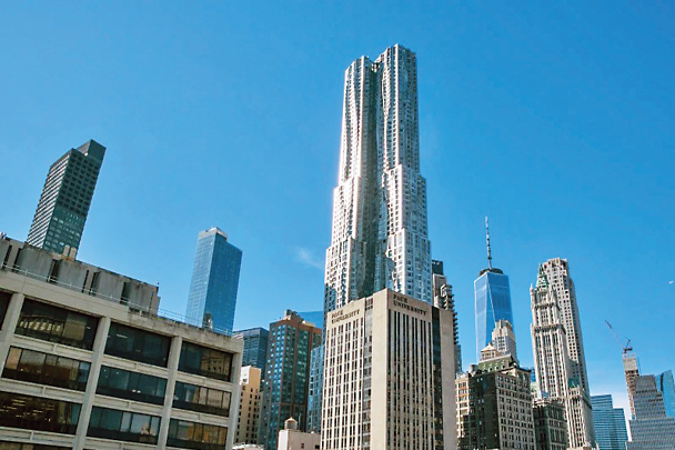 برج ۸ اسپرُس در نیویورک، نخستین آسمانخراش گری بود که در سال۲۰۱۱ در منطقه مالی منهتن ساخته شد. این ساختمان ۷۶ طبقهای، در زمان ساخت، بلندترین ساختمان مسکونی نیمکره غربی بود و بهعنوان «شاهکاری از طراحی معماری که هنر و کاربری را در هم میآمیزد» توصیف شده است.
