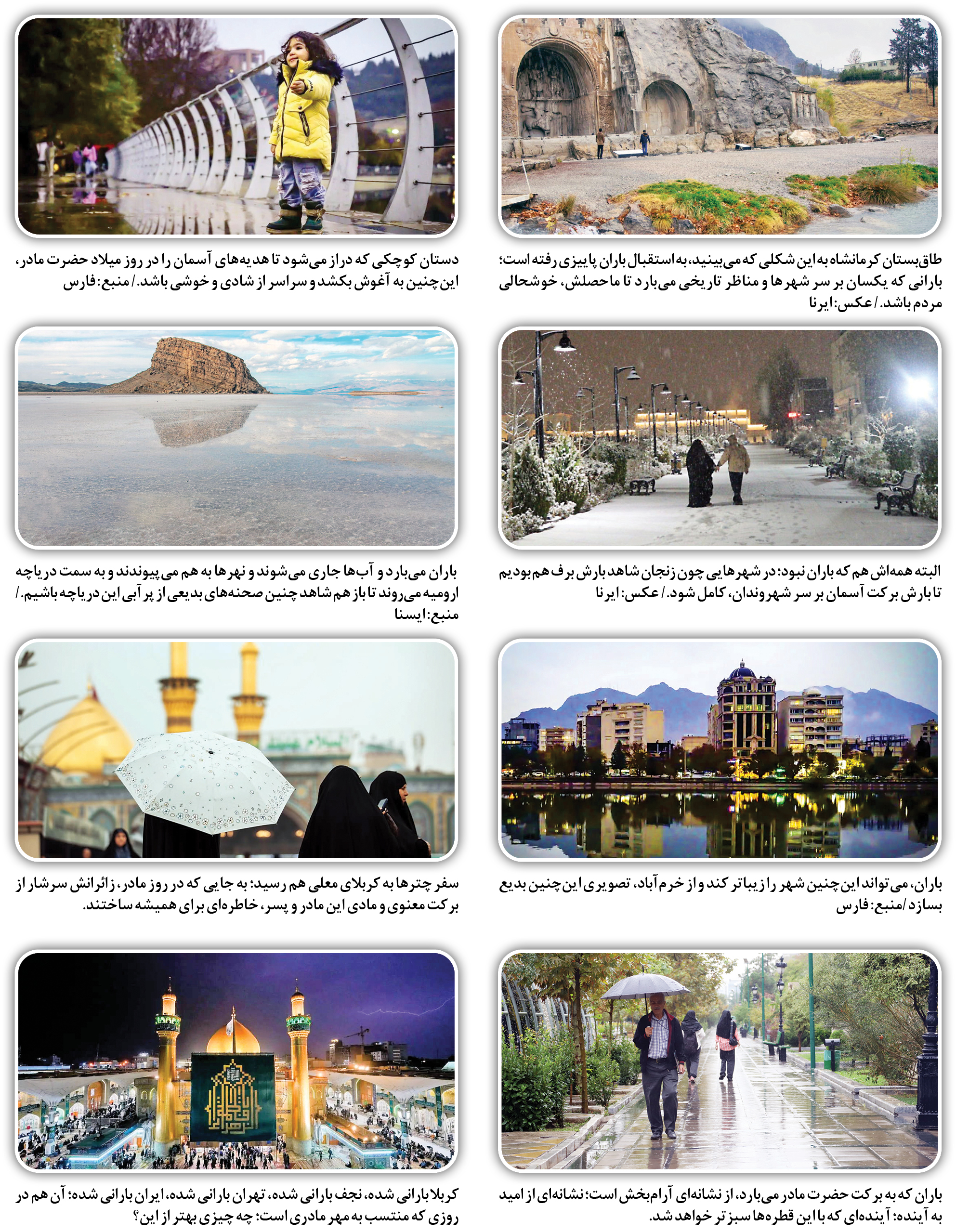 پاییز رو به پایان است دیگر. داریم برای شب یلدا حاضر میشویم؛ شبی که طولانیترین شب سال است و قاعدتا باید در میانه سرمای نیمه دوم سال برگزار شود، اما تا به حال بارش معناداری را شاهد نبودهایم. چشمها به آسمان است؛ چشمها نگران. آیا باران خواهد بارید؟ اگر نبارد، چه کنیم و سال بعد چه خواهد شد؟ اینها، دغدغههایی است که حالا از موضوعی ملی و حاکمیتی، به موضوعی فردی هم تبدیل شده است؛ هر کسی نگران است که وضعیت تنش آبی سال بعد و سالهای بعد چه خواهد شد؛ آنهم در سرزمینی نیمهخشک و نیمهبیابانی چون ایران. شهر اما شلوغ است؛ همه درگیر خریدهای روز مادری و روز زن. هوا هم ابری و گرفته. هواشناسی چند روز قبل گفته بود که بارشهای خوبی خواهیم داشت و از ورود سامانه بارشی برفو باران به 22 استان کشور خبر داد، اما باز هم چشمها نگران است. به طنز میگویند اعتباری به گفتههای هواشناسی نیست! آسمان هم در آستانه روز مادر و میلاد پربرکت حضرت زهرا سلاماللهعلیها، به مردم نگاه میکند؛ و به چشمهای نگرانشان. آسمان بغض میکند و تاب دیدن این چشمهای نگران را ندارد. آسمان نمنم میبارد تا برکت خودش را مهمان خوشحالی چشمهای شهروندان کند؛ به برکت سالروز تولد حضرت زهراس. چه میدانیم؛ شاید هم این هدیه روز مادری آسمان باشد به شهروندان نگران. هر چه هست، این همنشینی، برای ما برکت است؛ برای ما خیر است؛ و برای ما، یک روز مادر بهیادماندنی؛ روزی که شهروندان و این کشور، مهمان کرم حضرت مادر شدند.