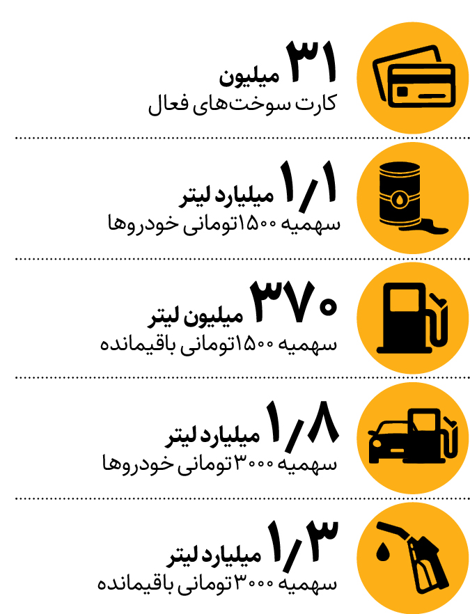 مدیرعامل شرکت ملی پخش فرآورده‌های نفتی ایران از واریز یک‌میلیارد و ۱۲۰ میلیون لیتر بنزین با نرخ اول و یک میلیارد و ۸۶۶ میلیون لیتر بنزین با نرخ دوم به کارت‌های سوخت خودروهای بنزینی در آذر خبر داد و گفت: خودروهای تک‌سوز و دوگانه‌سوز حجم بالایی از سهمیه ۳ هزار تومانی دارند که در 8روز پایانی آذر می‌توانند از آن استفاده کنند و نیازی به استفاده از کارت جایگاه‌ها نیست.‌ کرامت ویس‌کرمی درباره سهمیه‌های واریزشده برای ۳۱ میلیون کارت سوخت فعال کشور در آذر امسال اظهار کرد: درمجموع یک میلیارد و ۱۲۰ میلیون لیتر بنزین با نرخ اول ۱۵۰۰ تومانی به کارت‌های هوشمند سوخت خودروهای بنزینی واریز شده که تا ۲۱ آذر ۷۴۸ میلیون لیتر آن استفاده شده بود و حدود ۳۷۰ میلیون لیتر آن در کارت‌های سوخت همچنان موجود است.‌وی با اشاره به مقدار سهمیه مصرف‌شده خودروهای بنزینی با نرخ دوم ۳۰۰۰ تومانی در آذر بیان کرد: در مجموع یک میلیارد و ۸۶۶ میلیون لیتر بنزین با نرخ دوم ۳۰۰۰ تومانی برای خودرهای بنزین‌سوز در آذر واریز شد که تا ۲۱ آذر تنها ۱۸۶ میلیون لیتر آن مصرف شده و همزمان با اجرای طرح جدید بنزین از ۲۲ آذر، همچنان یک‌میلیارد و ۳۷۹ میلیون لیتر بنزین با نرخ دوم در کارت‌های هوشمند سوخت موجود است .