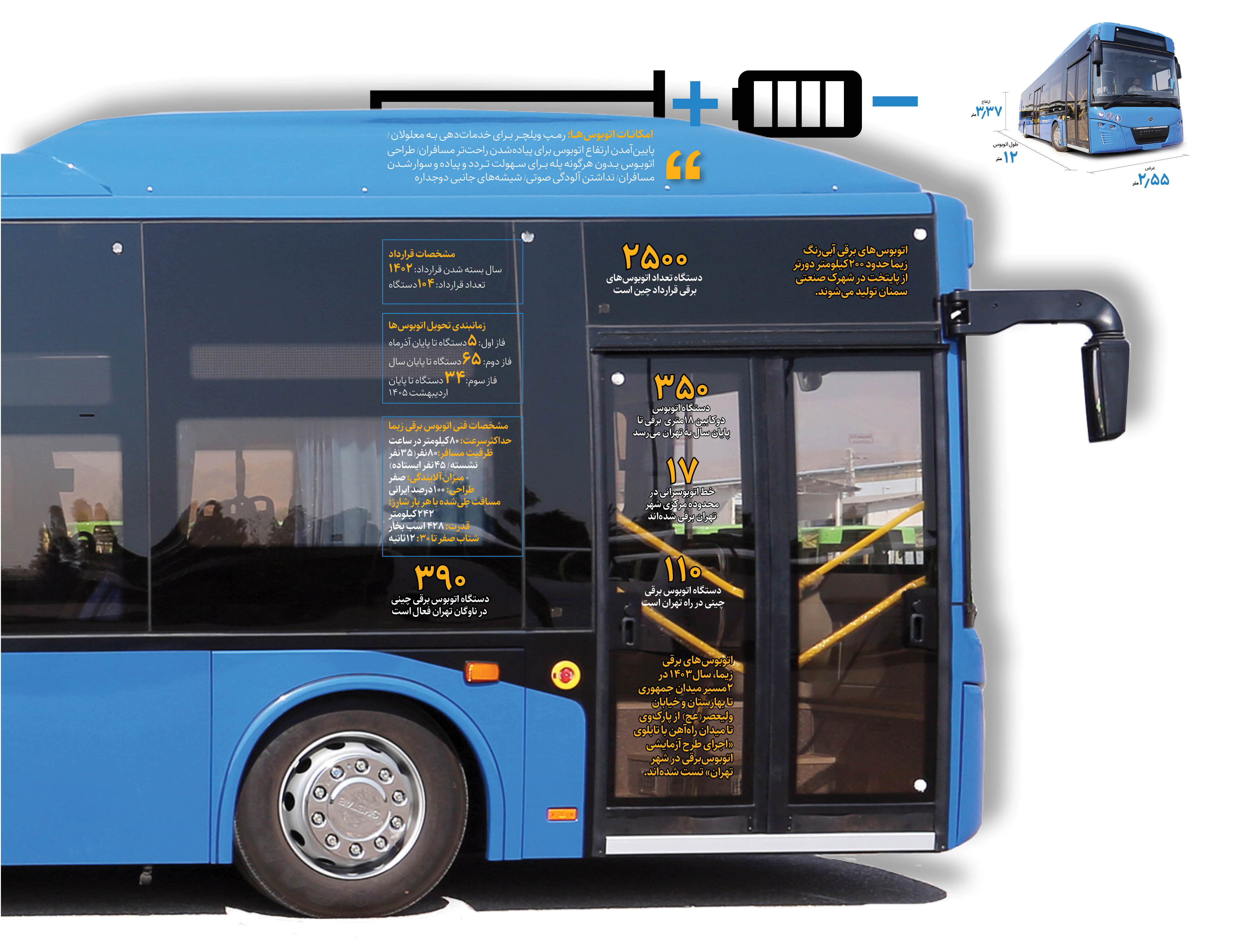 مهدی چمران، رئیس شورای شهر تهران:از آغاز دوره فعالیت شورا و شهرداری تلاش کردیم که با استفاده از ظرفیت شرکتهای داخلی، اتوبوسهای جدید خریداری کنیم. با این حال، بهدلیل تعطیلی چندساله صنعت اتوبوسسازی در کشور، تنها موفق به جذب حدود یکهزار و ۶۰۰دستگاه اتوبوس داخلی شدیم. برای جبران کمبود اتوبوس، قرارداد خرید ۲هزار دستگاه اتوبوس برقی از چین بسته شد که بخشی از آنها وارد شده و مابقی نیز تحویل خواهد شد. برنامههایی برای تولید داخلی اتوبوسهای برقی با همکاری شرکتهای چینی در دست اجراست تا در آینده بخش عمدهای از نیاز حملونقل عمومی در داخل کشور تامین شود.