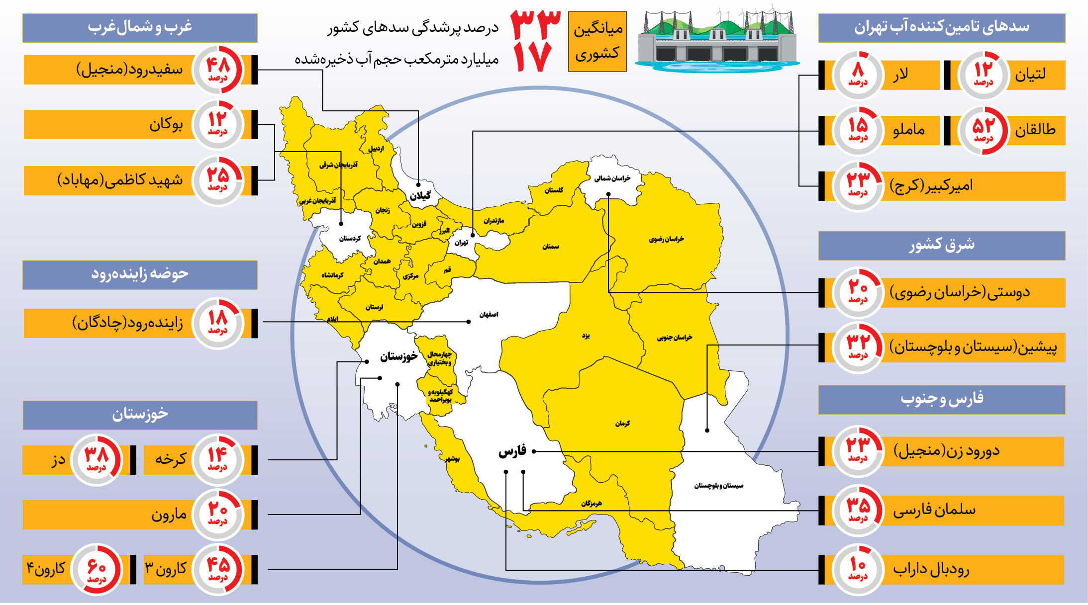 بررسیها نشان میدهد بیش از ۹۰درصد سدهای مخزنی ایران با درجههای مختلف با رسوب درگیر هستند و بهطور متوسط ۲۰ تا ۳۰درصد از ظرفیت مفید مخازن از دست رفته است. در برخی سدهای قدیمی این کاهش به ۴۰ تا ۵۰ درصد هم میرسد. سالانه میلیونها مترمکعب رسوب وارد سدها و سبب میشود حجم واقعی آب قابل استفاده کمتر از آمار پرشدگی مخازن سدها باشد.