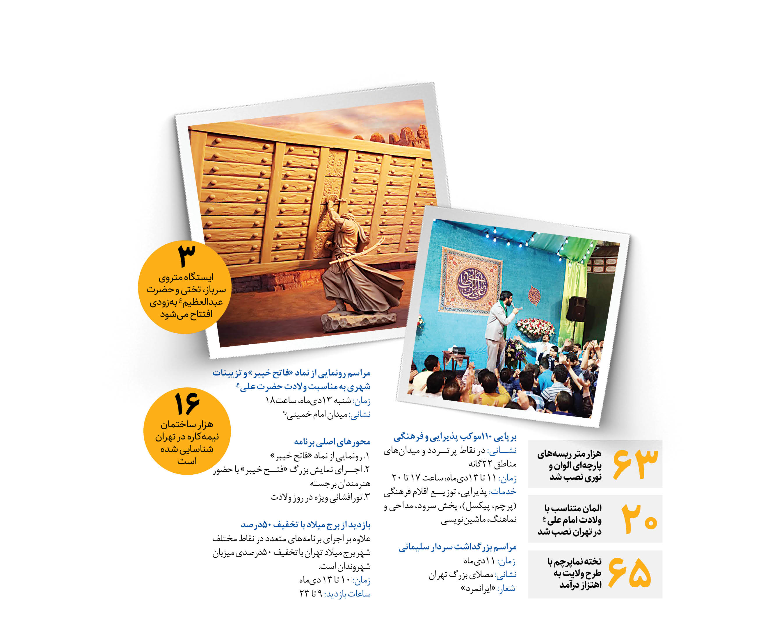 علاوه بر اجرای برنامه‌های متعدد در نقاط مختلف شهر برج میلاد تهران با تخفیف ۵۰درصدی میزبان شهروندان است.