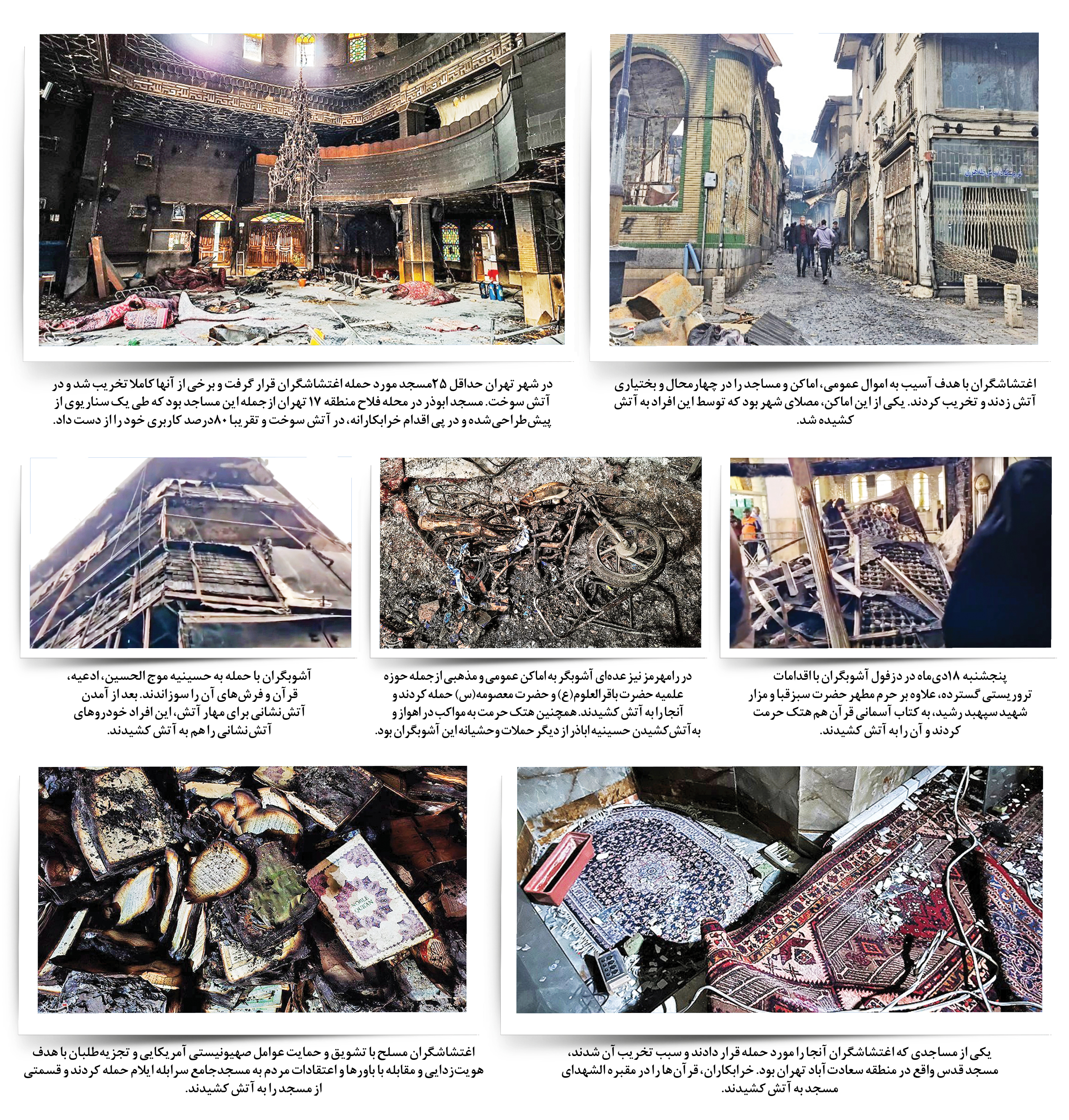 آتشسوزی و تخریب صدها مسجد ،امامزاده و بقعه در آشوبهای اخیر، نشان داد که با چه کسانی روبهرو هستیم. گزارش تصویری پیش رو، به بخشی از این تخریبها پرداخته است.
