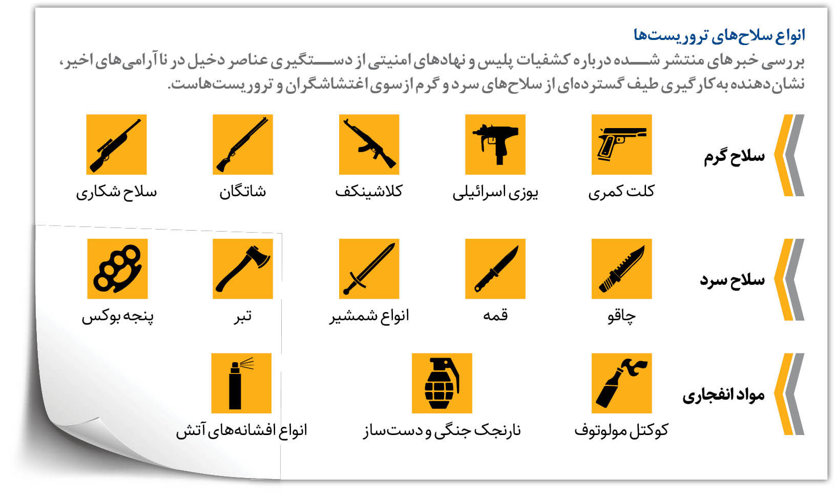 براساس اعلام مرکز اطلاعرسانی پلیس فراجا مقدار قابل توجهی سلاح از تروریستهای دستگیر شده، کشف شده است.
