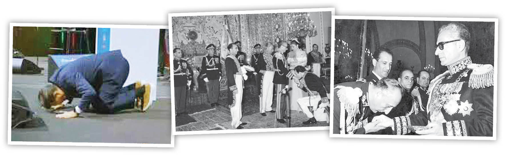 این قبیل اقدامات، مثل زانو زدن و سجده کردن حتی در نشست مونیخ هم تکرار شد؛ مردی در مقابل رضا پهلوی سجده کرد و حضار با تشویق، همان روابط ارباب و رعیت را زنده کردند.