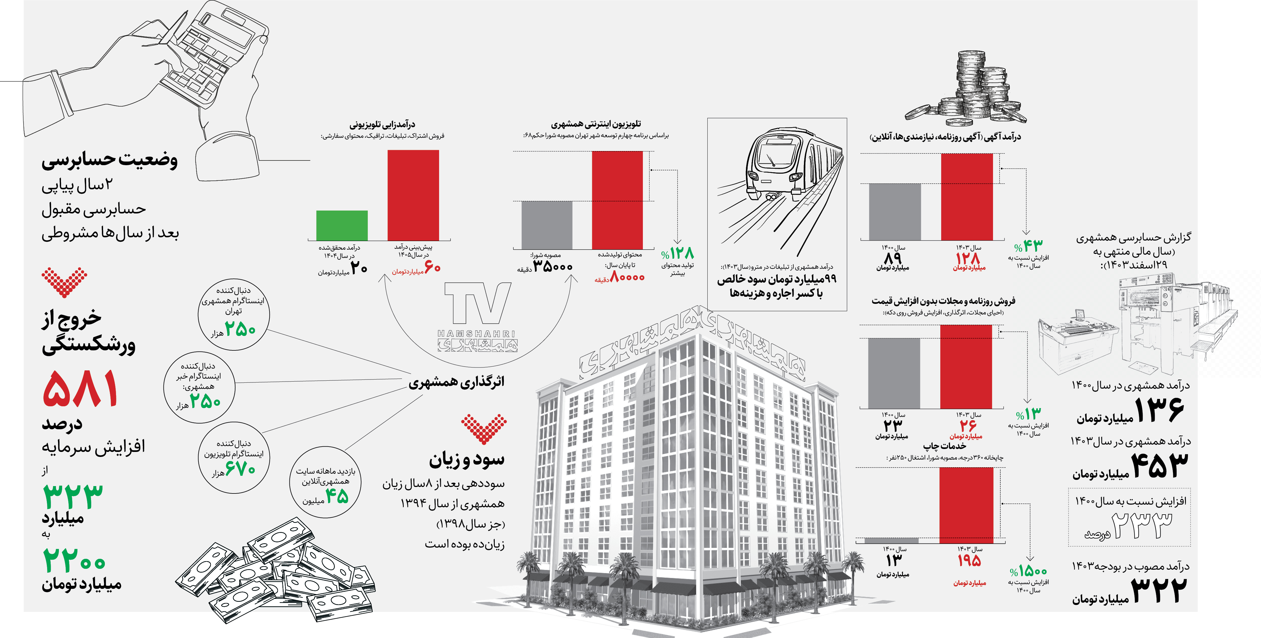 گزارش حسابرسی شرکت همشهری این هفته در سیصدونودمین جلسه شورای شهر بررسی شد. شرکت همشهری در این دوره برای دومین سال پیاپی نظر مثبت حسابرس را دریافت کرد و برای نخستینبار پس از ۸سال سودآور بود و از وضعیت ورشکستگی خارج شد. اعضای شورا گزارش حسابرسی مؤسسه همشهری برای سال مالی۱۴۰۳ را با حداکثر آرای موافق تصویب کردند. اما این تغییرات در نتیجه برخی اقدامها و کارهای اجرایی بوده که همشهری در یکسال گذشته انجام داده است. محسن مهدیان، مدیرعامل مؤسسه همشهری با اعداد و ارقام، خیلی شفاف موارد و مولفههای مرتبط را بررسی کرده است.