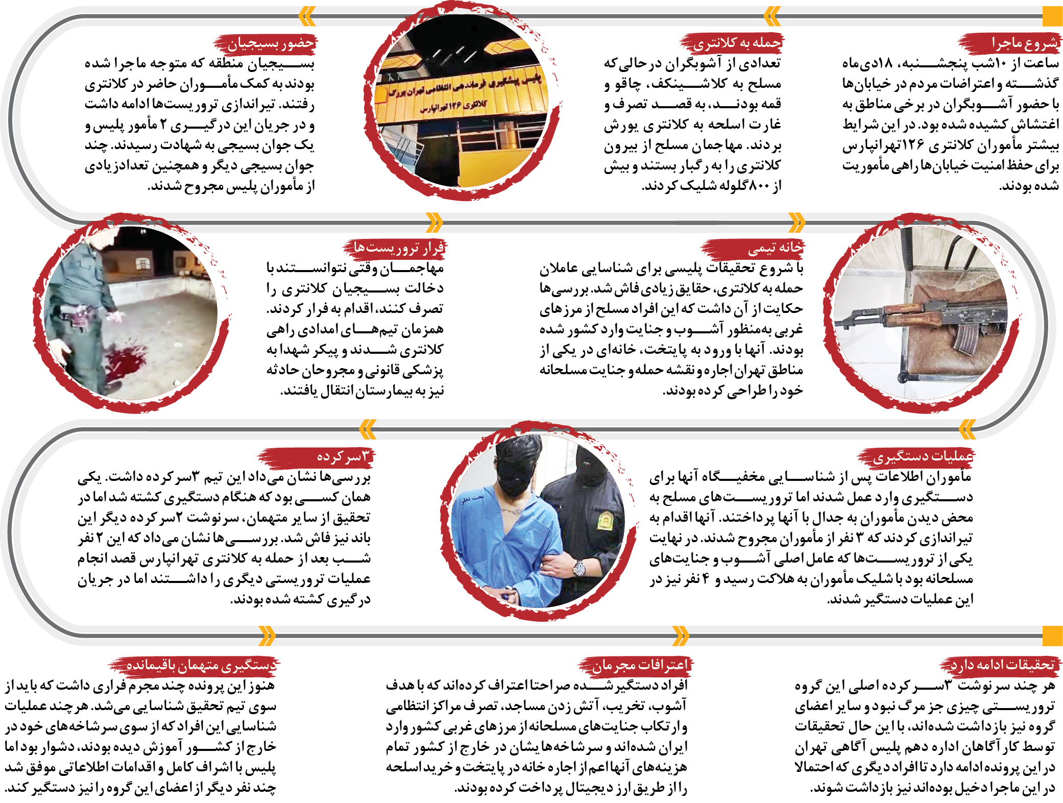 عاملان اصلی حمله تروریستی ۱۸دی‌ماه به کلانتری ۱۲۶تهرانپارس که در جریان آن ۲مأمور پلیس و یک جوان بسیجی به شهادت رسیدند، 3 مجرم آموزش‌دیده بودند که در حوادثی جداگانه به هلاکت رسیدند. این در حالی است که همدستان آنها نیز دستگیر شده‌اند و تحقیقات در این پرونده توسط کارآگاهان اداره دهم پلیس آگاهی تهران ادامه دارد.