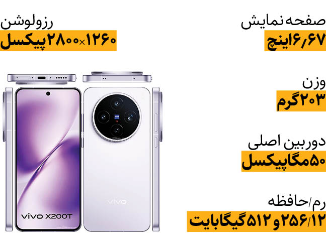 شرکت چینی ویوو از میان‌رده جدید خود با نام X200T رونمایی کرد. این گوشی با تراشه دایمنسیتی9400، باتری 6200میلی‌آمپر ساعتی و قیمت پایه 550یورو، 14بهمن عرضه می‌شود.