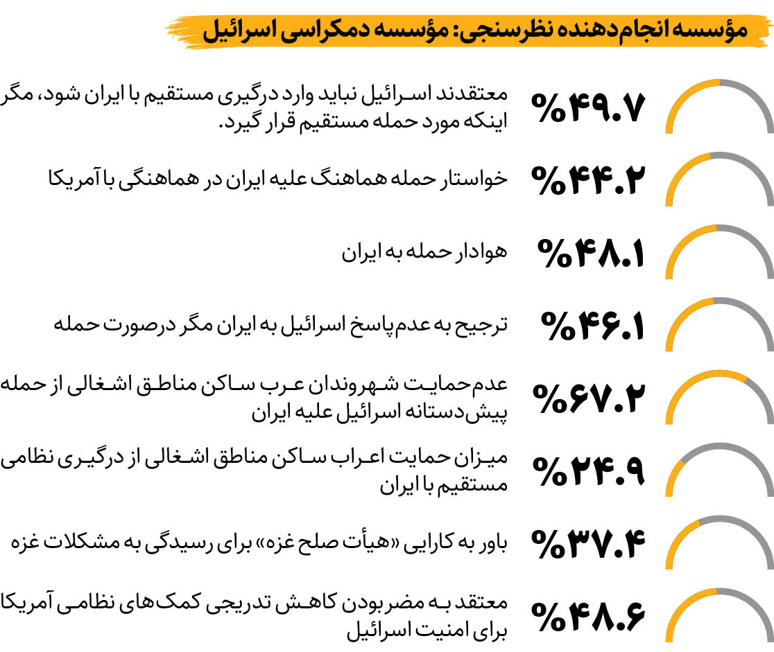 روزنامه عبریزبان هاآرتص در گزارشی به بررسی نظرسنجی یک مؤسسه اسرائیلی درباره نظر ساکنان فلسطین اشغالی درباره ایران، آینده غزه و کمکهای آمریکا پرداخته است.