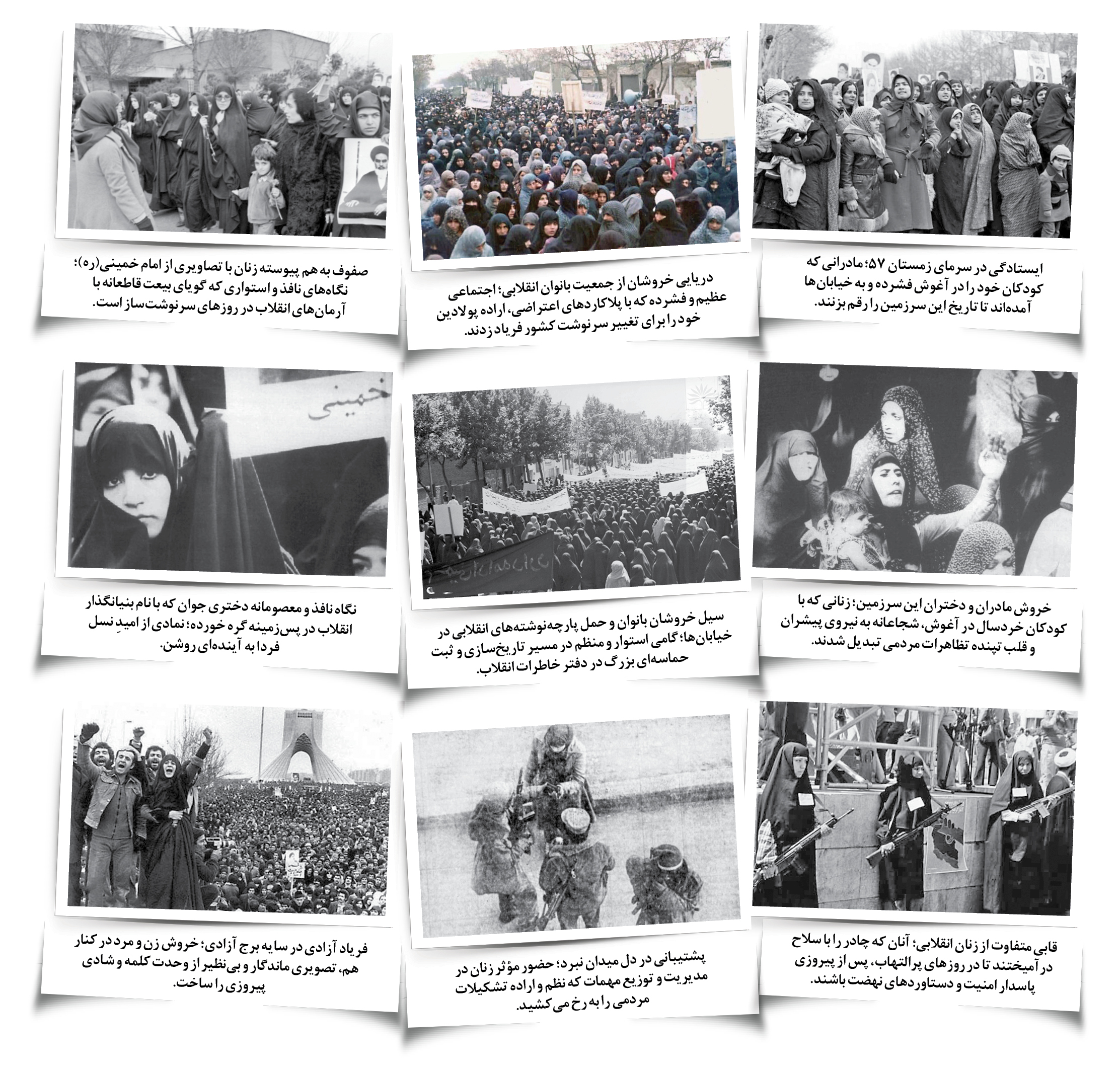 تاریخ اغلب صدایی بم و مردانه دارد؛ پر از فریادهای خشن و گام‌های سنگین چکمه‌پوشان. اما اگر لنز دوربین‌ها را کمی بچرخانیم، اگر گوش‌مان را به لایه‌های زیرین هیاهوهای بهمن ۵۷ بسپاریم، صدای دیگری می‌شنویم؛ صدایی که از پستوی خانه‌ها بیرون زد و آسفالت خیابان‌های تهران را تسخیر کرد. گزارش تصویری پیش‌‌رو، تلاشی است برای بازخوانی همین حضور؛ حضوری که کلیشه‌های رایج از «زن ایرانی» را در زمستان آن سال درهم شکست؛  زنانی که نوزادانشان را در یک دست و پلاکارد های اعتراض را در دست دیگر داشتند؛ زنانی که ترس را پشت در خانه جا گذاشتند  و در برابر لوله‌های تفنگ، نه با خشونت که با صلابتی مادرانه ایستادند. عکس‌هایی که در ادامه می‌بینید، تنها ثبت یک لحظه تاریخی نیستند بلکه سندی بر بلوغ سیاسی زن ایرانی در یکی از حساس‌ترین پیچ‌های تاریخ معاصرند. در این تصاویر، خبری از ژست‌های آتلیه‌ای نیست. اینجا غبار خیابان روی چهره‌ها نشسته و نگرانی و امید توأمان در چشم‌ها موج می‌زند. اینجا زنانی را می‌بینید که دوشادوش مردان -و گاه جلوتر از آنان- فریاد زدند تا ثابت کنند هیچ تحول بزرگی بدون امضای آنان، سندیت نخواهد داشت.