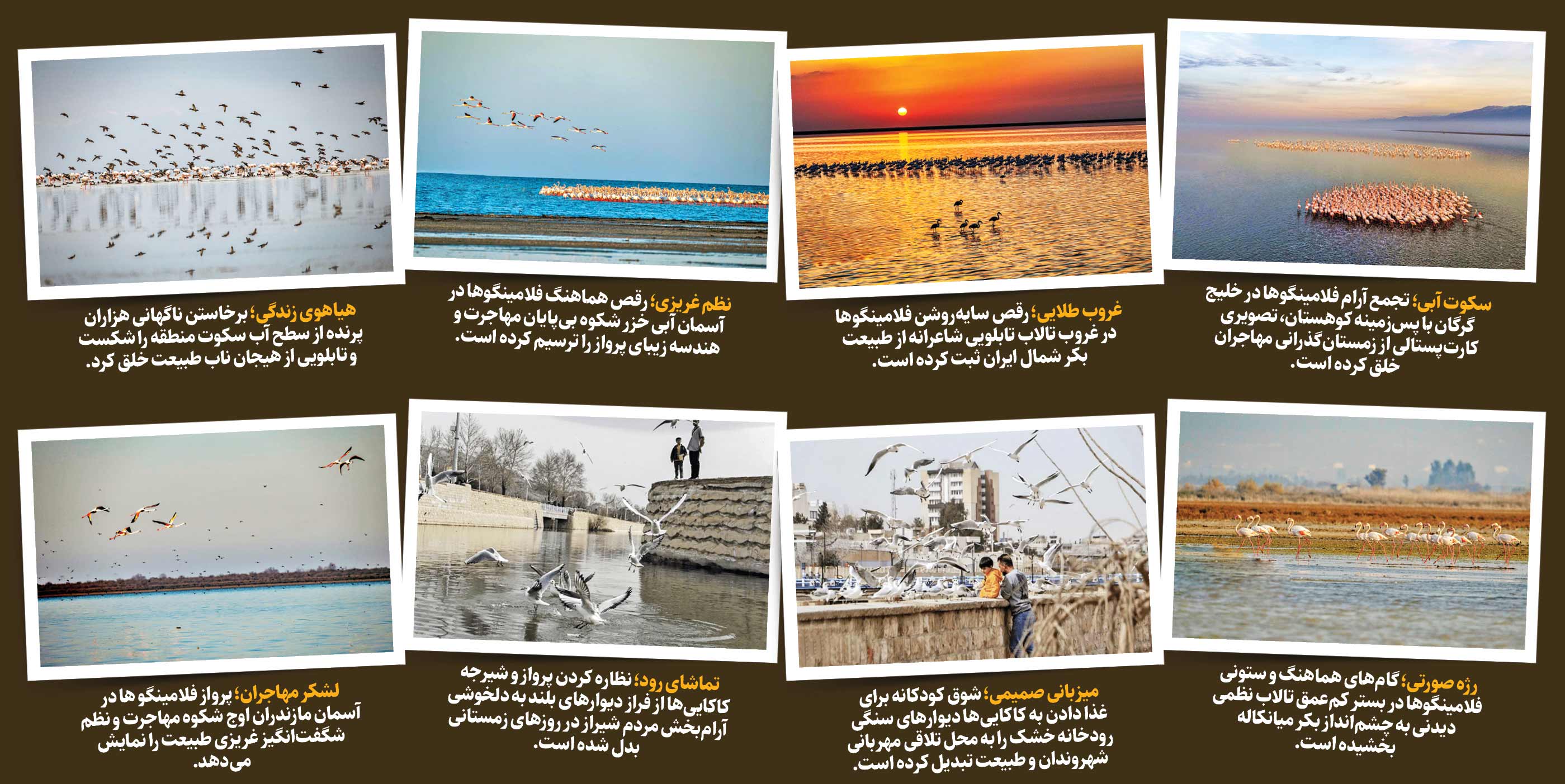 گزارشی از فرود فلامینگوها در میانکاله و خلیج گرگان و پرواز کاکاییها بر فراز رودخانه شیراز