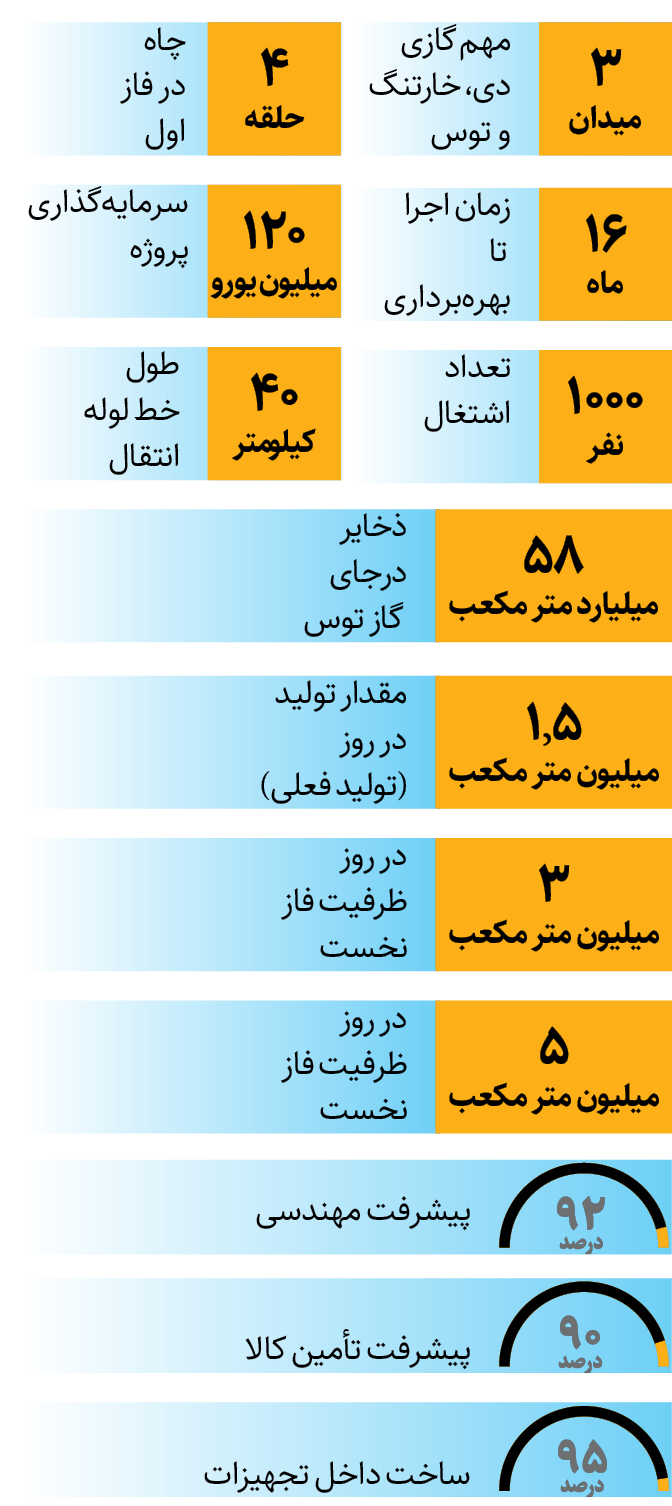 با آغاز برداشت گاز از میدان گازی توس پس از حدود 2 دهه انتظار، امنیت انرژی شمال‌شرق کشور تقویت شده است. این میدان که در کمتر از ۱۶‌ماه توسعه یافت، اکنون روزانه ۱.۵ میلیون مترمکعب گاز تولید می‌کند و با تکمیل چاه‌ها، ظرفیت آن به ۳ میلیون مترمکعب در روز افزایش خواهد یافت. این اتفاق مهم پایداری گازی در استان‌های خراسان رضوی، شمالی، جنوبی، سمنان و گلستان را بهبود می‌بخشد.