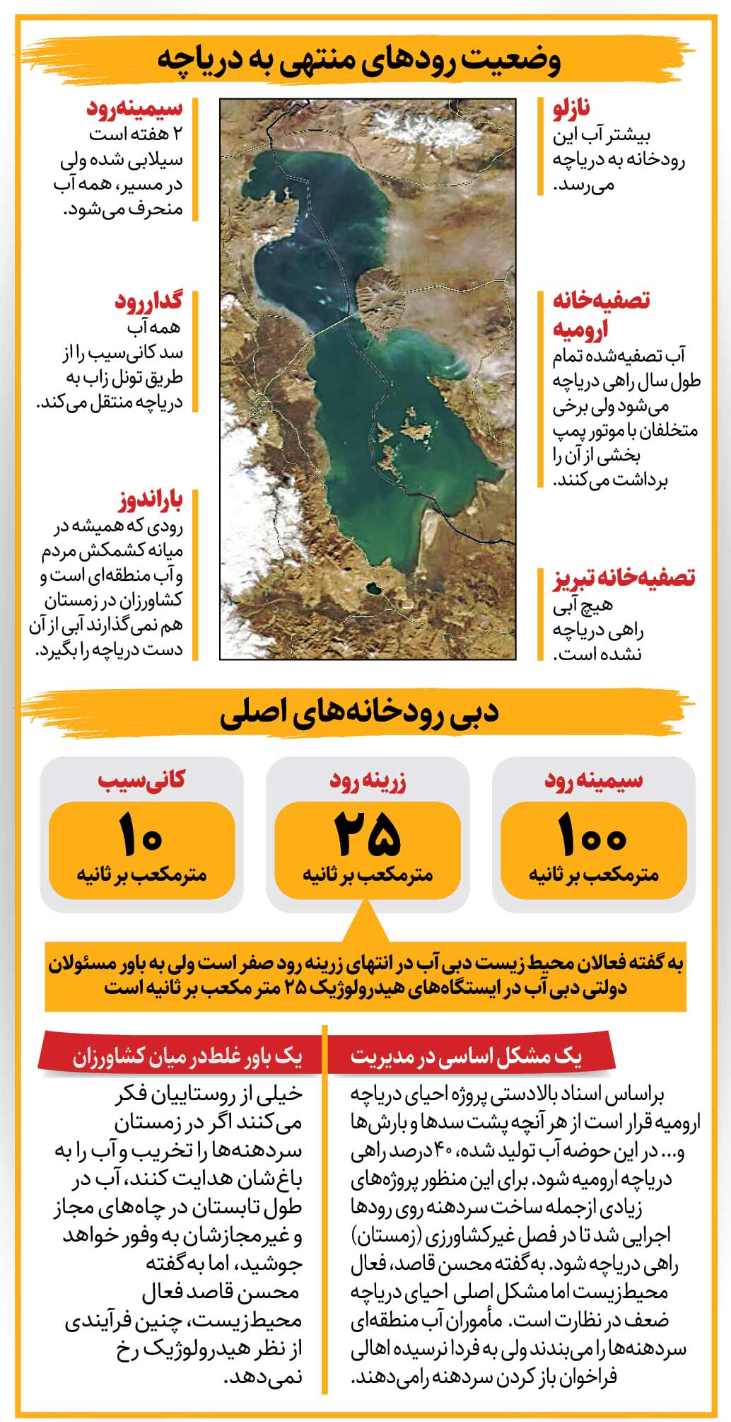 سامانه‌های بارشی در سال آبی جاری بارندگی‌هایی فراتر از میانگین را برای حوضه آبریز دریاچه ارومیه آورده است؛ تراز دریاچه ارومیه به 1270.18متر رسیده است و این عدد، نسبت به آذر 19سانتی‌متر بهبود را نشان می‌دهد.  بارش‌های زمستان امسال که تا اینجای راه به‌صورت برف بوده، می‌تواند سرنوشت 6‌ماه آینده دریاچه را مشخص کند. تراز فعلی در مقایسه با مدت مشابه سال گذشته همچنان ۷ سانتی‌ متر کمتر و چشم امید دریاچه به برف کوهستان‌هاست.‌