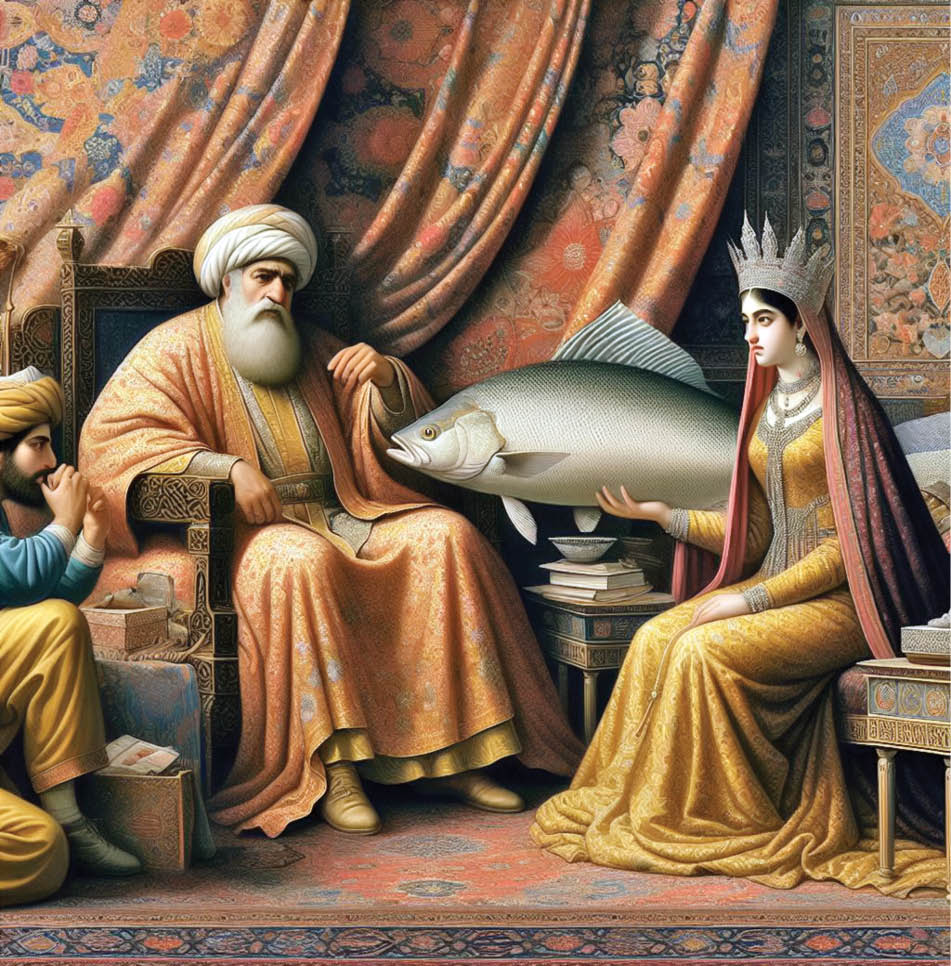 حبیب بافت تور سلّیّه، مخصوص صید میگو، را به پایان می‌رساند و آرام‌آرام به سوی رودخانه می‌رود تا به گفته خودش ماهی‌ها فرار نکنند. او می‌خواهد تور را امتحان کند. حبیب بخشی از تور را روی شانه‌اش پهن می‌کند و طنابش را به دندان می‌گیرد و بخش دیگر را با دو دست می‌گیرد و در آب می‌اندازد.