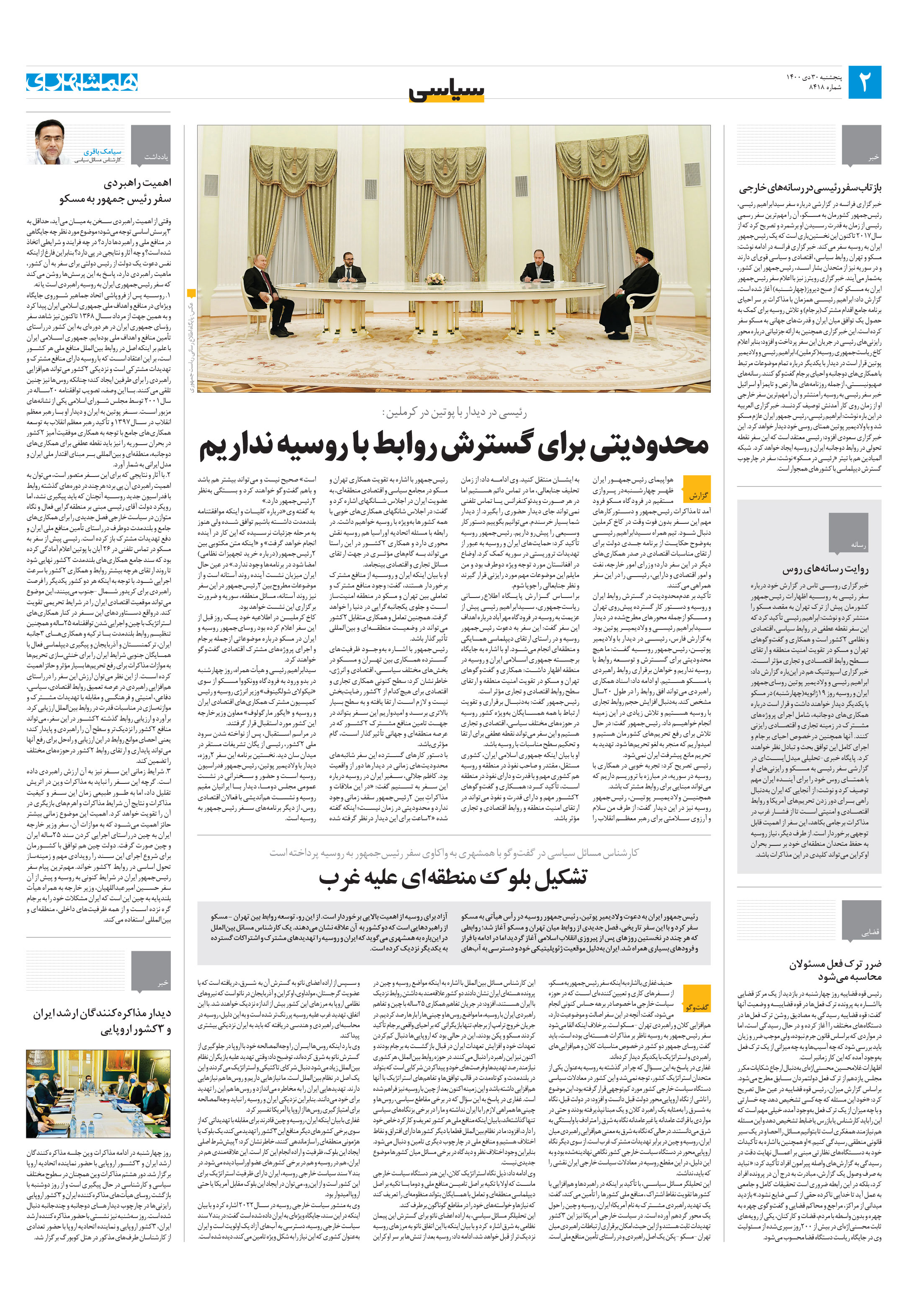رئیسجمهور ایران به دعوت ولادیمیر پوتین، رئیسجمهور روسیه در رأس هیأتی به مسکو سفر کرد و با این سفر تاریخی، فصل جدیدی از روابط میان تهران و مسکو آغاز شد
