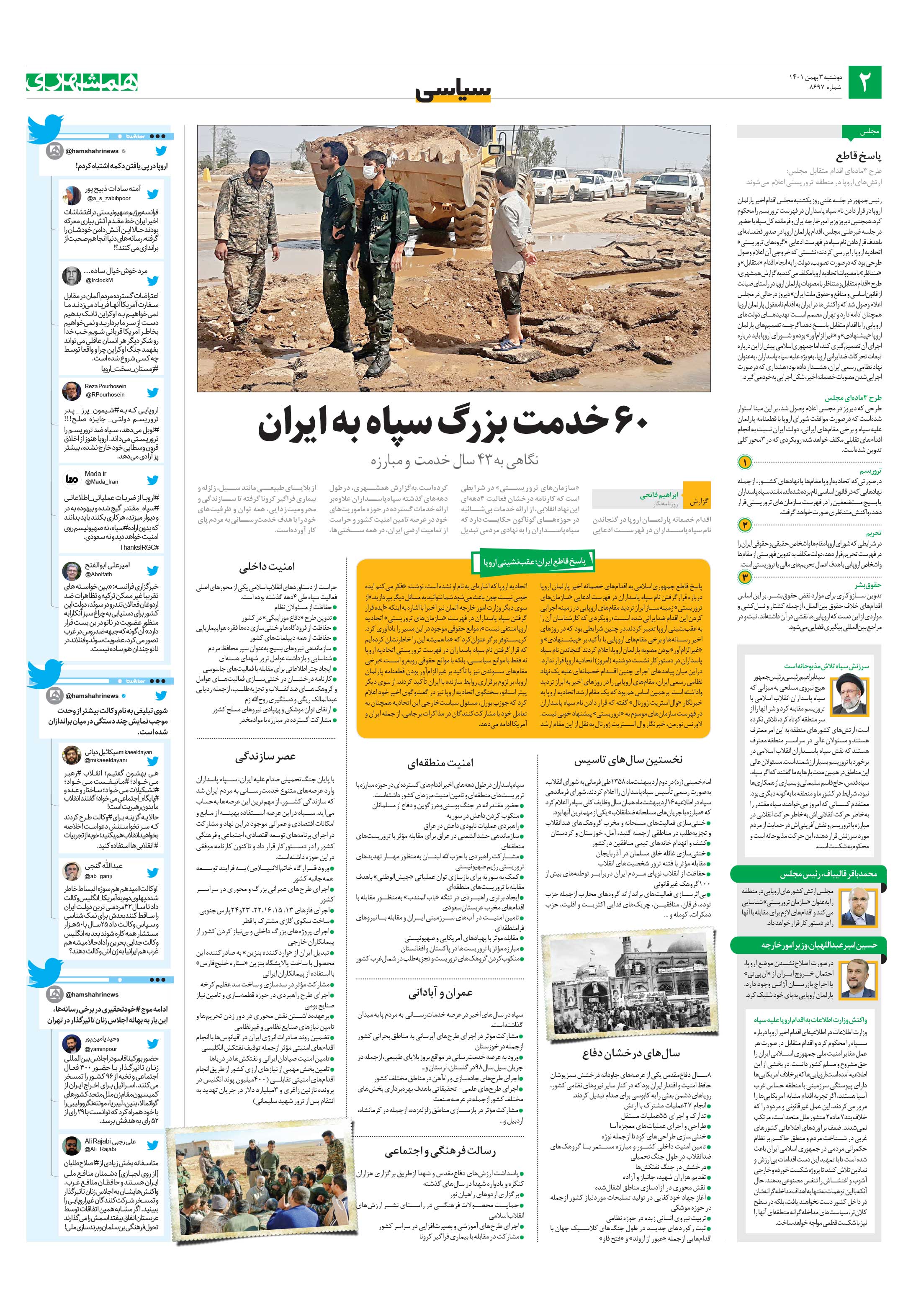 اقدام خصمانه پارلمان اروپا در گنجاندن نام سپاهپاسداران در فهرست ادعایی «سازمانهای تروریستی» در شرایطی است که کارنامه درخشان فعالیت 4دههای این نهاد انقلابی، از ارائه خدمات بیشائبه در حوزههای گوناگون حکایت دارد که سپاهپاسداران را به نهادی مردمی تبدیل کردهاست.