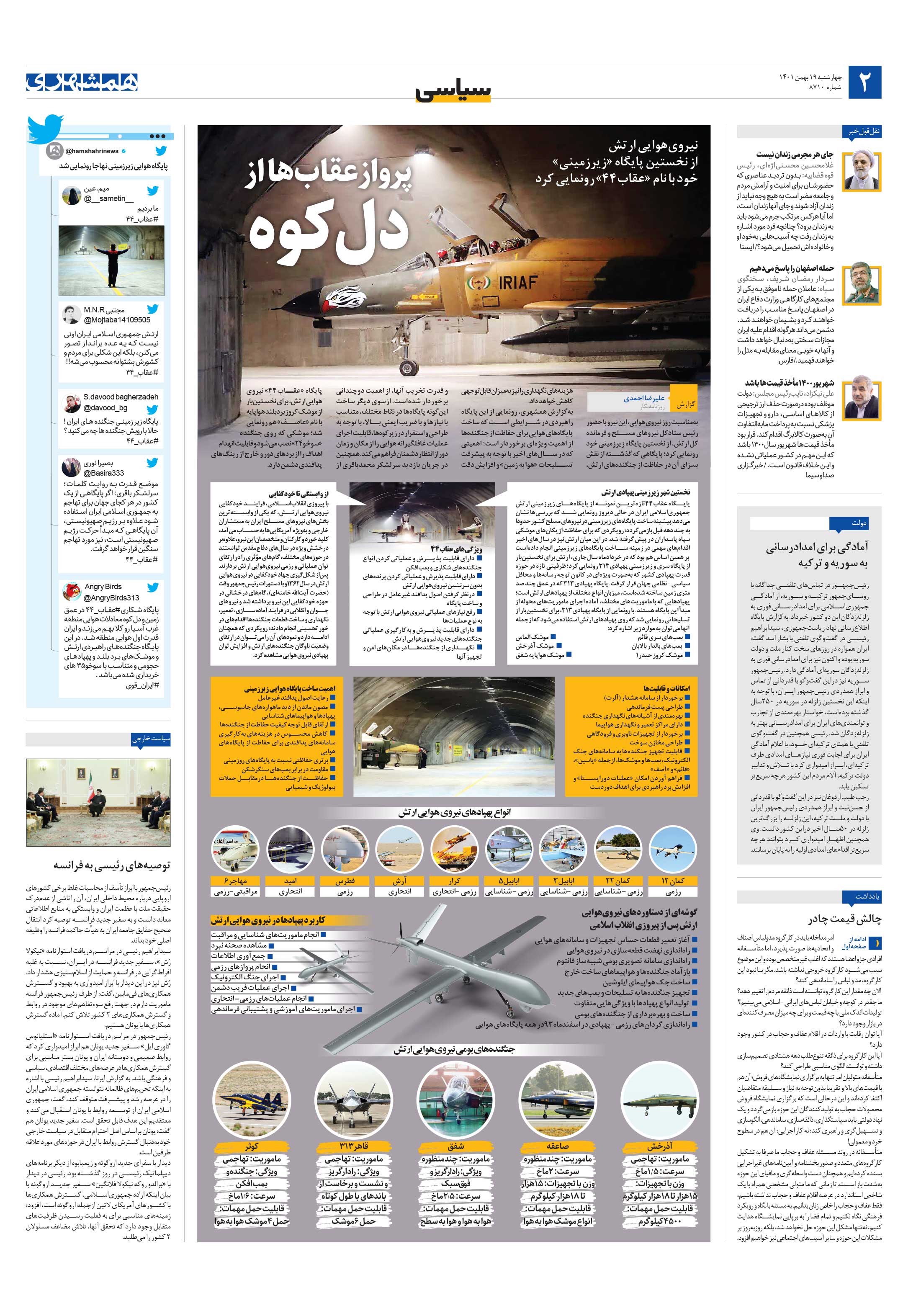 نیرویهوایی ارتش از نخستین پایگاه «زیرزمینی» خود با نام «عقاب۴۴» رونمایی کرد