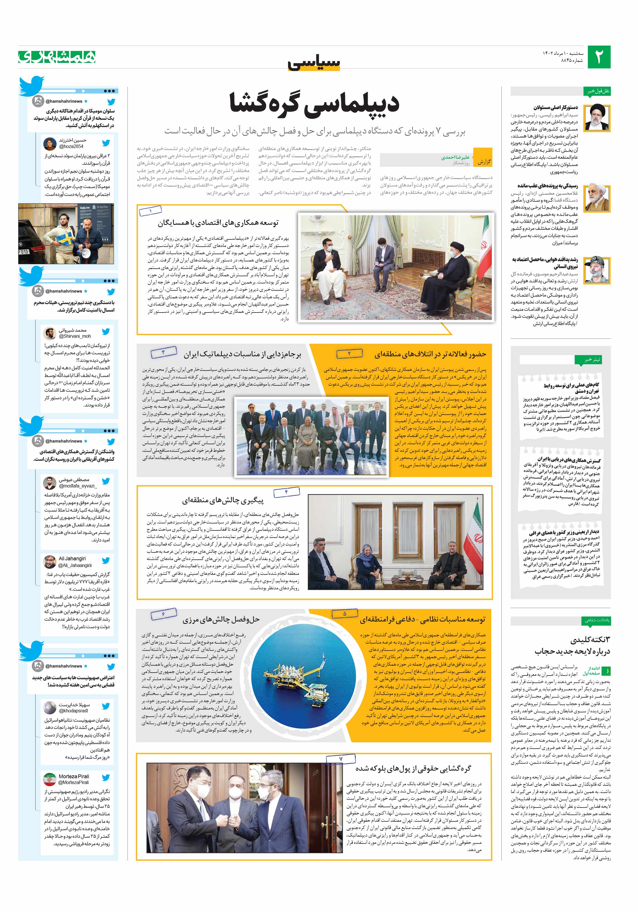 دستگاه سیاستخارجی جمهوریاسلامی روزهای پرترافیکی را پشتسر میگذارد و رفتوآمدهای مسئولان کشورهای مختلف جهان، در ردههای مختلف و در حوزههای متکثر، چشمانداز نوینی از توسعه همکاریهای منطقهای را ترسیم کردهاست.