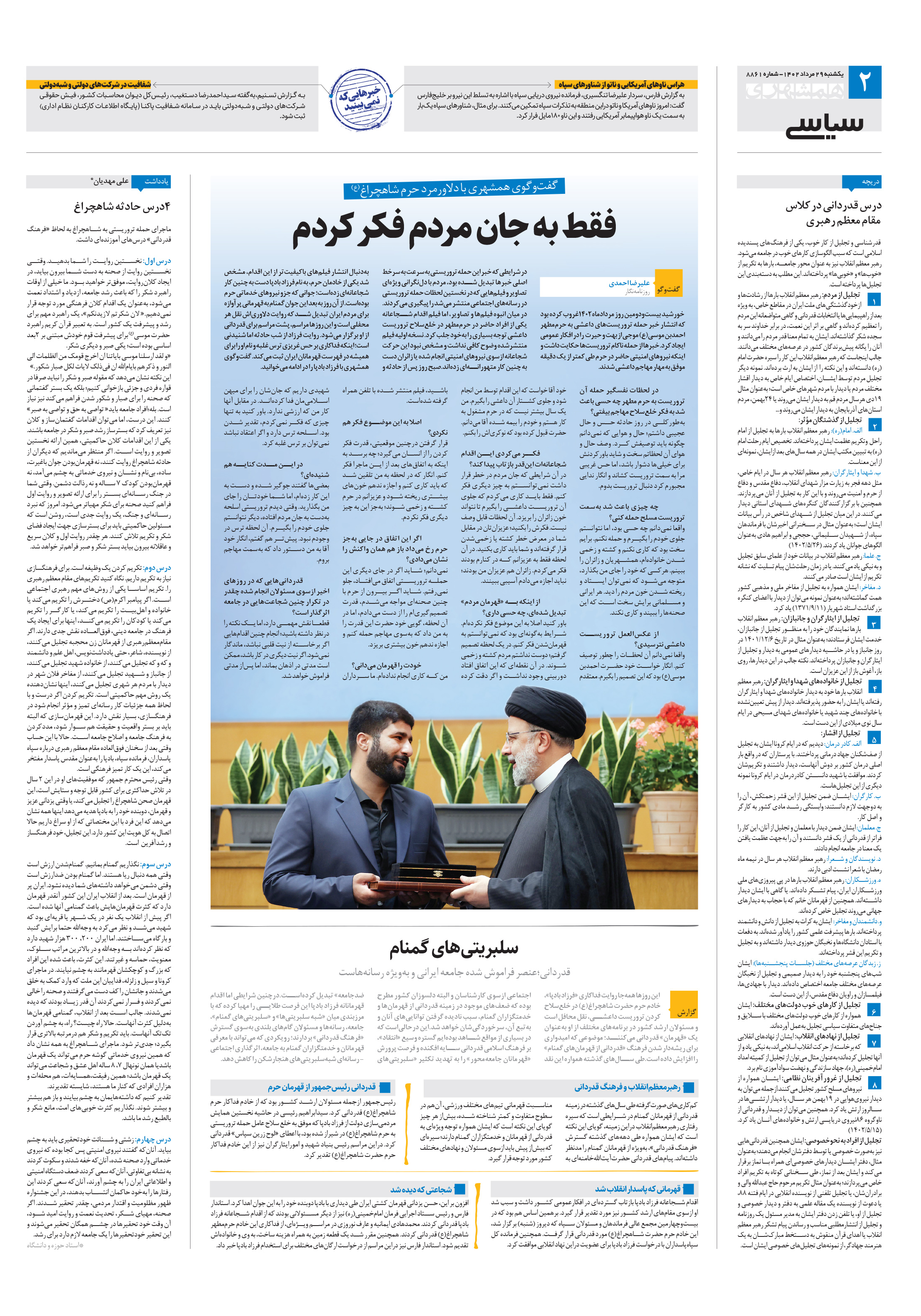 ماجرای حمله تروریستی به شاهچراغ به لحاظ «فرهنگ قدردانی» درسهای آموزندهای داشت.