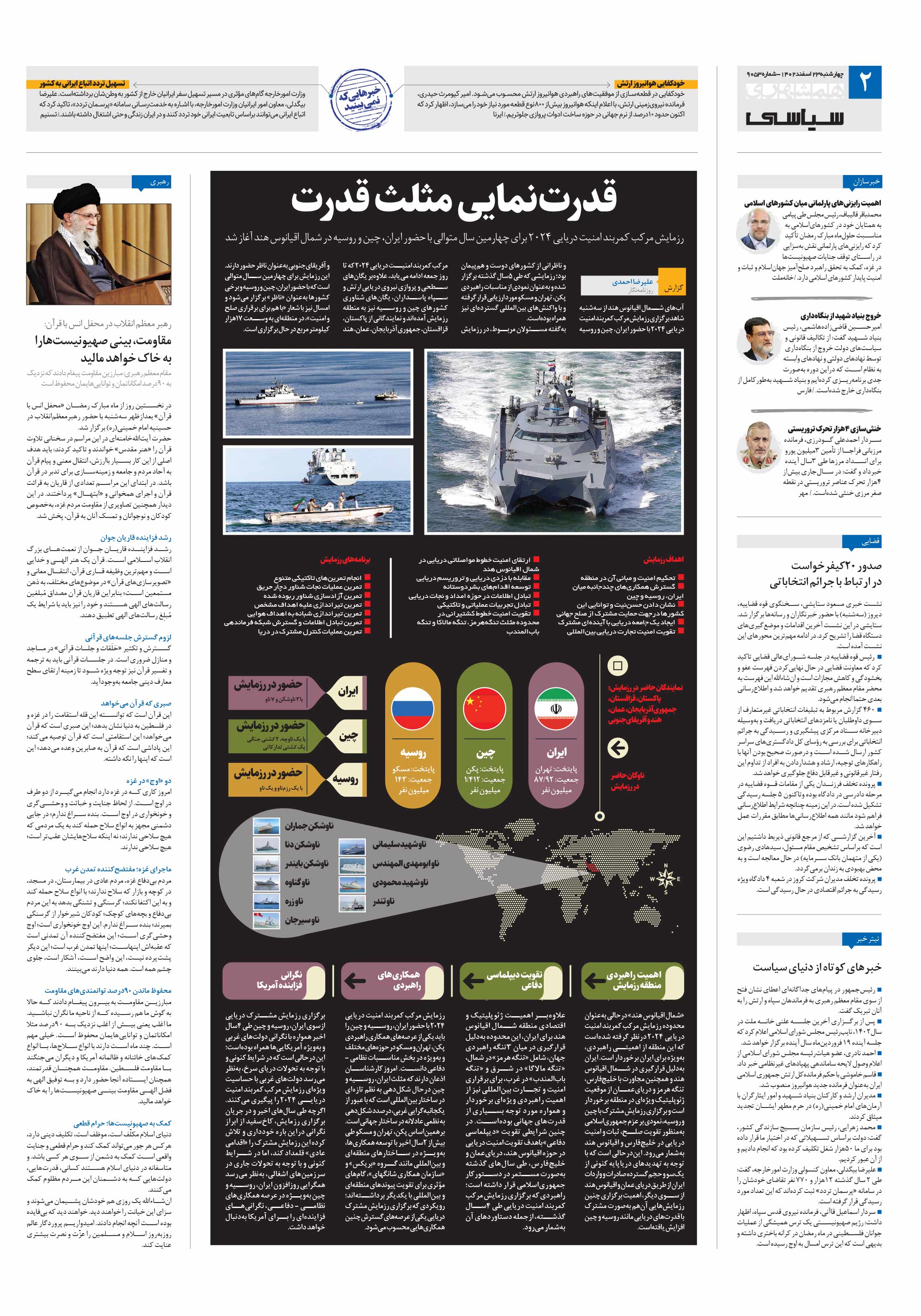 آبهای شمال اقیانوس هند از سهشنبه شاهد برگزاری رزمایش مرکب کمربند امنیت دریایی ۲۰۲۴ با حضور ایران، چین و روسیه و ناظرانی از کشورهای دوست و همپیمان بود؛ رزمایشی که طی 5سال گذشته برگزار شده و بهعنوان نمودی از مناسبات راهبردی پکن، تهران و مسکو مورد ارزیابی قرار گرفته و با واکنشهای بینالمللی گستردهای نیز همراه بودهاست.
