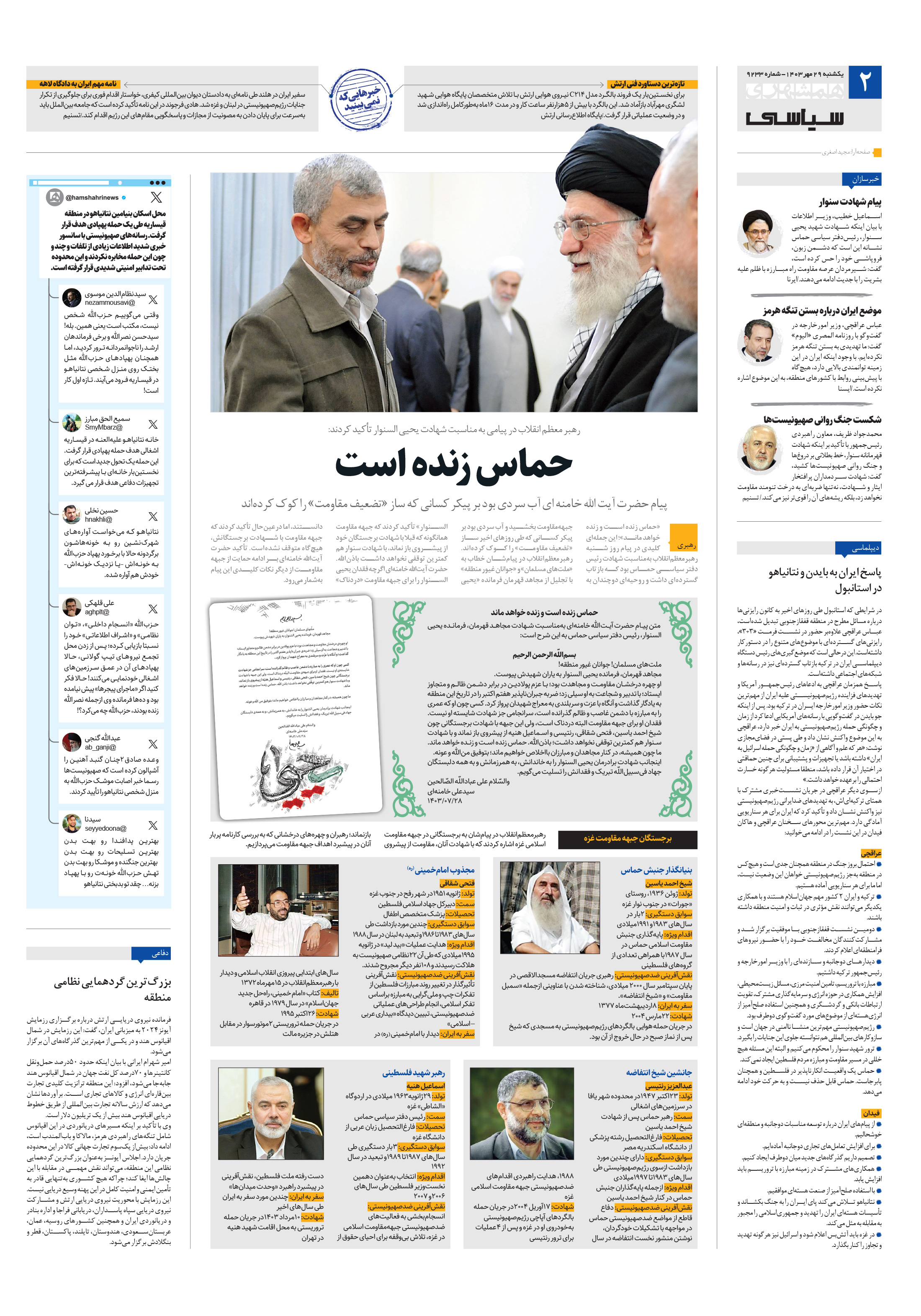 «حماس زنده است و زنده خواهد ماند»؛ این جملهای کلیدی در پیام روز شنبه رهبرمعظمانقلاب بهمناسبت شهادت رئیس دفتر سیاسی حماس بود که بازتاب گستردهای داشت و روحیهای دوچندان به جبههمقاومت بخشید و آب سردی بود بر پیکر کسانی که طی روزهای اخیر ساز «تضعیف مقاومت» را کوک کردهاند.