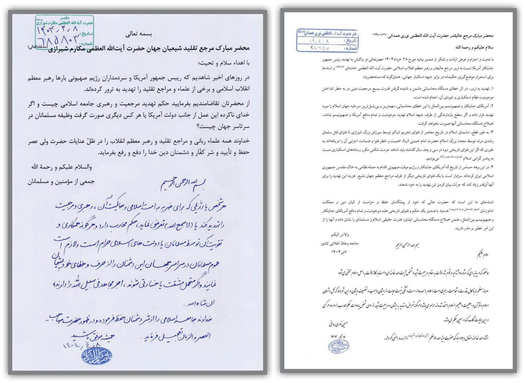 حمایت از فتوای تاریخی مراجع مبنی بر محارب بودن تهدیدکنندگان رهبرمعظم انقلاب و مرجعیت همچنان در سپهر سیاسی – مذهبی جهان اسلام ادامه دارد؛ موضوعی که بیش از هر چیز نشاندهنده جایگاه رفیع رهبری و مرجعیت در میان امت اسلامی است.