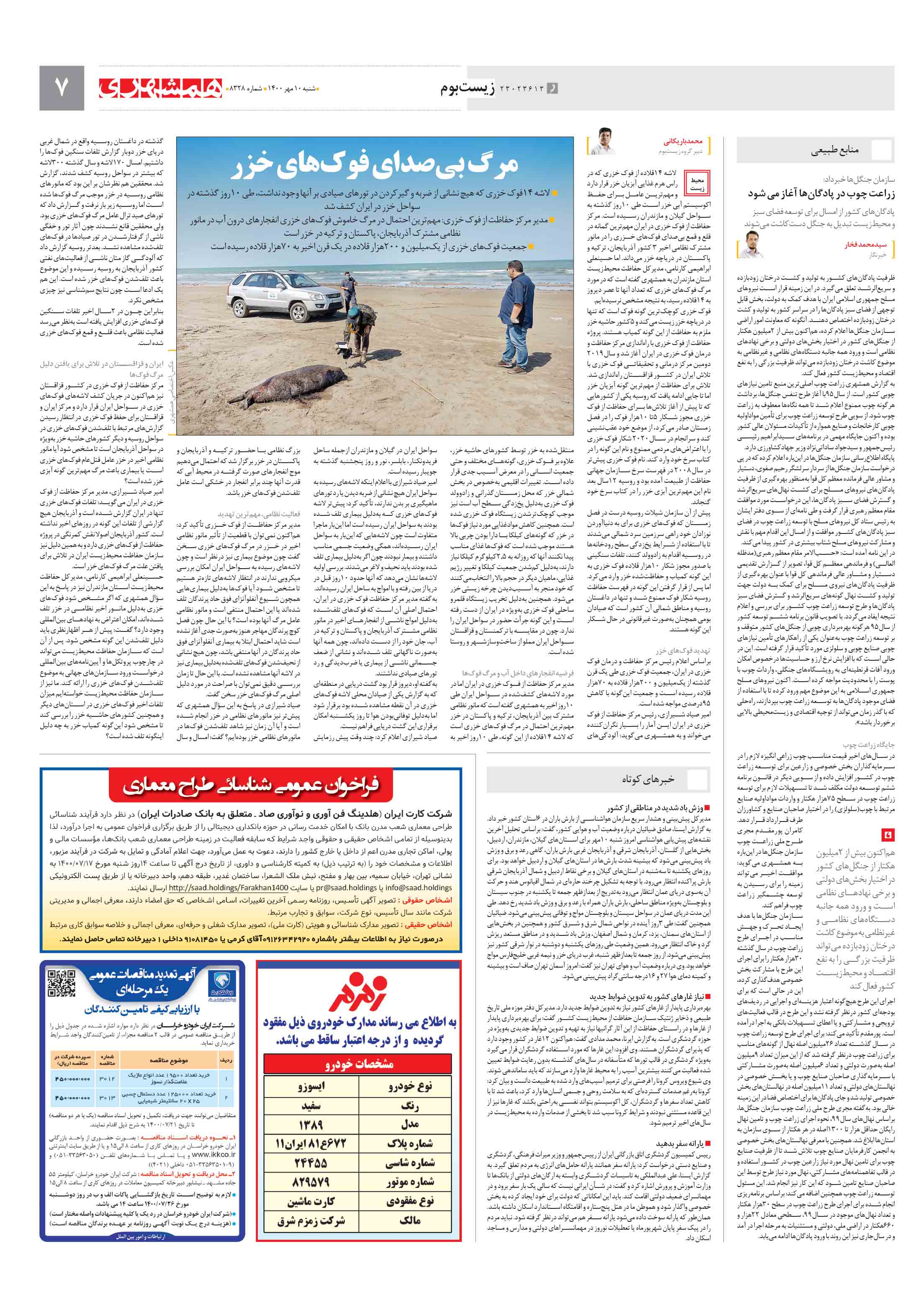 لاشه 14قلاده از فوک خزری که در راس هرم غذایی آبزیان خزر قرار دارد و مهمترین عامل برای حفظ اکوسیستم آبی خزر است طی 10روز گذشته به سواحل گیلان و مازندران رسیده است.