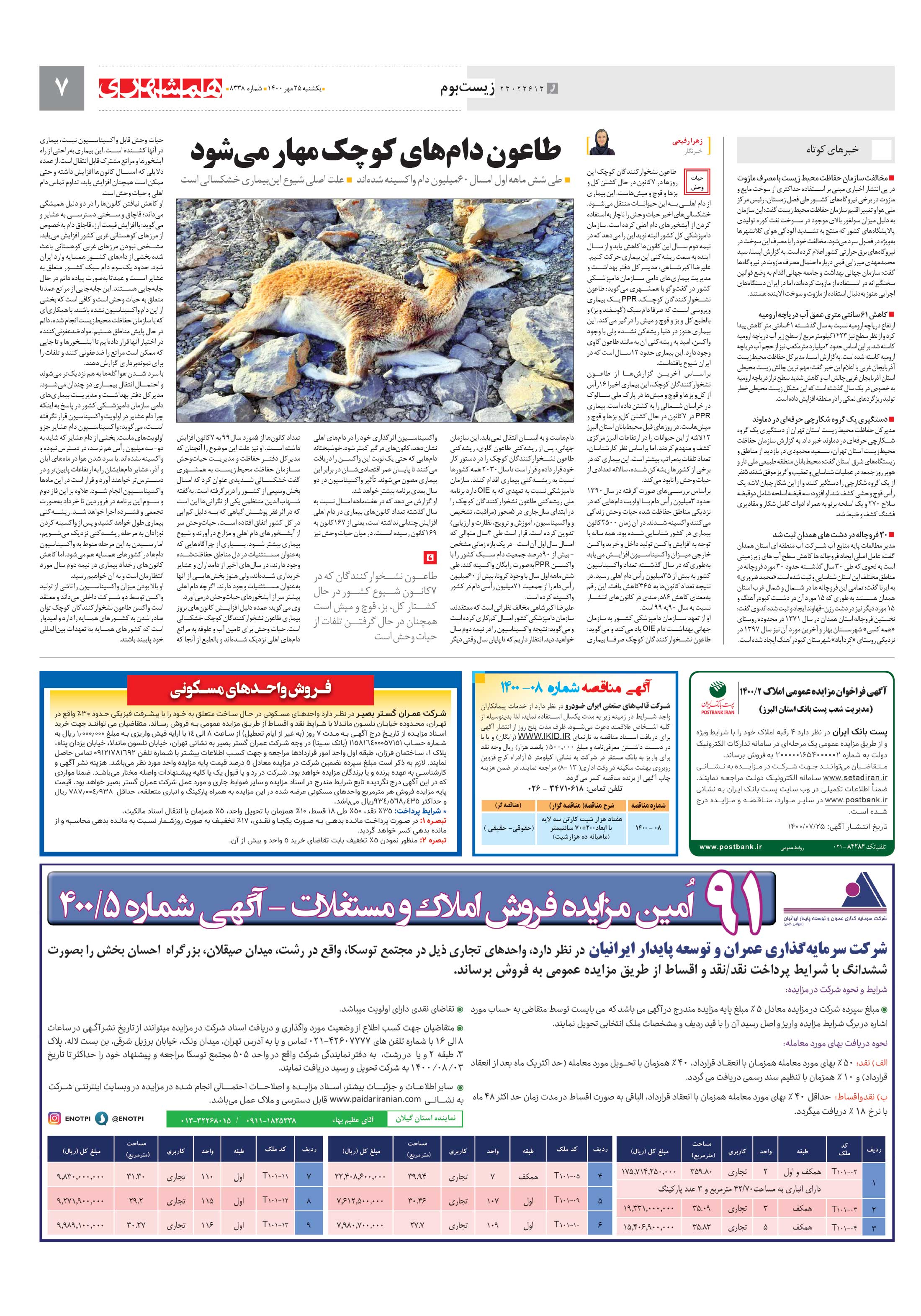 طاعون نشخوارکنندگان کوچک این روزها در 7کانون در حال کشتن کل و بزها و قوچ و میشهاست. این بیماری از دام اهلی به این حیوانات منتقل میشود.